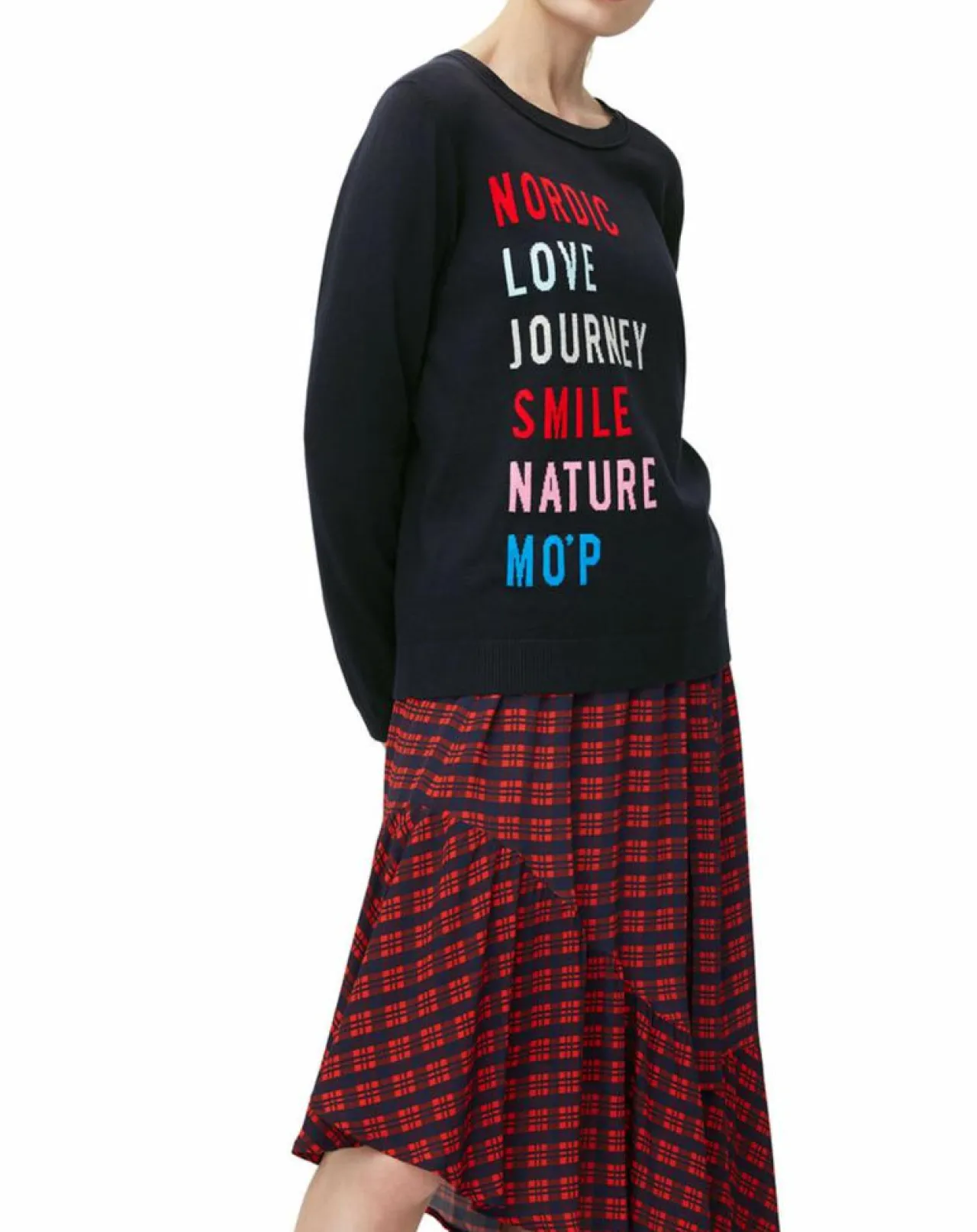 Pull léger avec motif typographique brodé sur toute la partie avant.