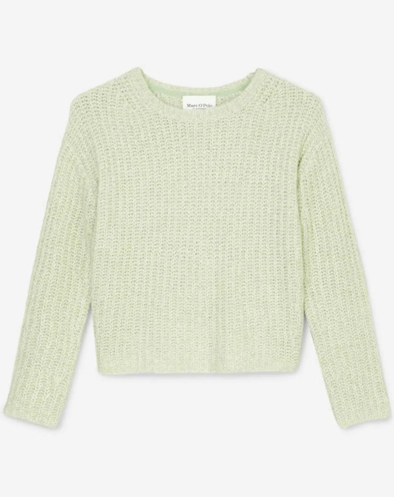 Mélange de coton, laine et laine d’alpaga ultra-doux à encolure ronde côtelée, épaules très tombantes et extrémités rectilignes au bas des manches et à la base.