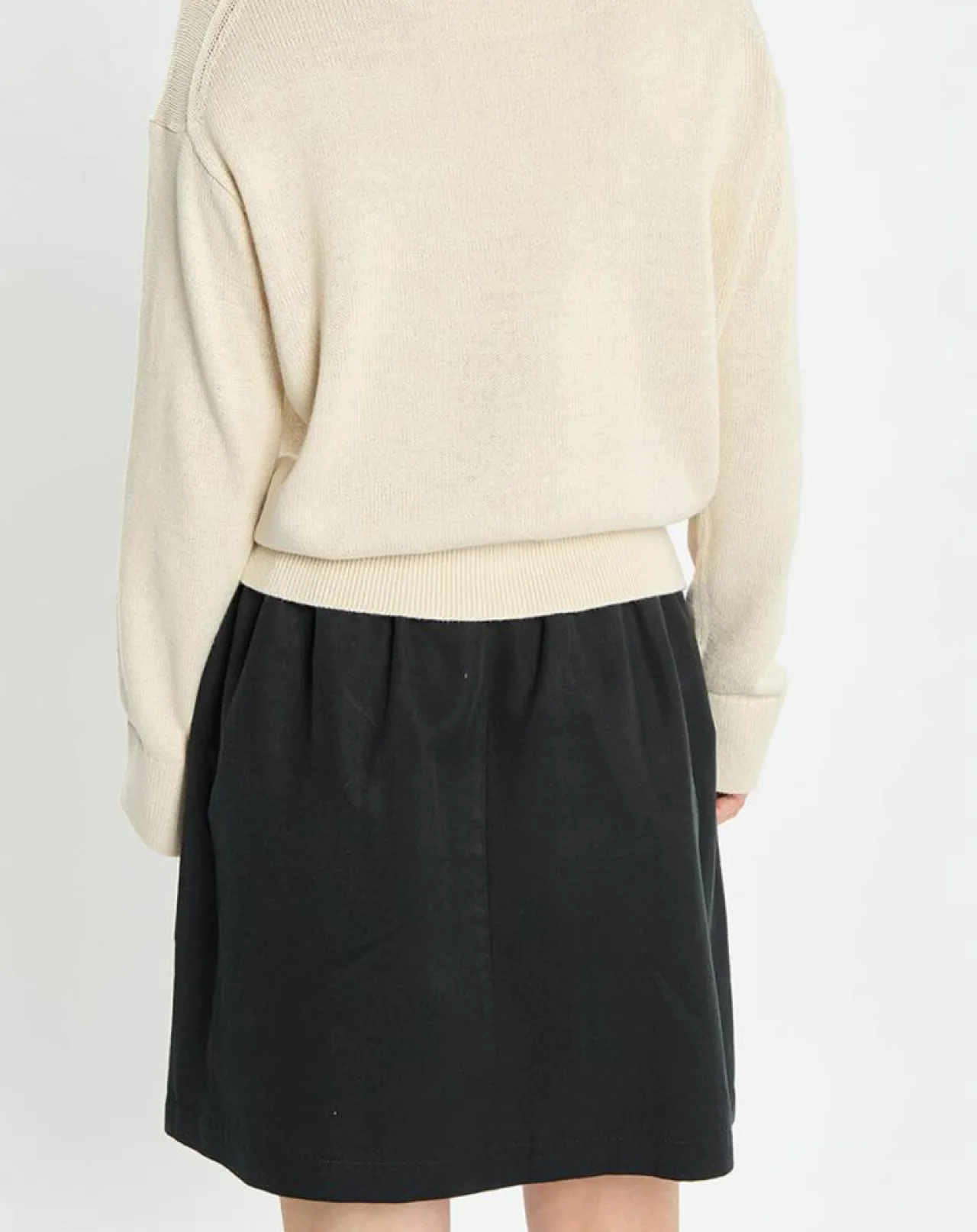 Ce modèle a une encolure bateau large et décontractée, des épaules tombantes et des bordures côtelées au bas des manches et à la base.