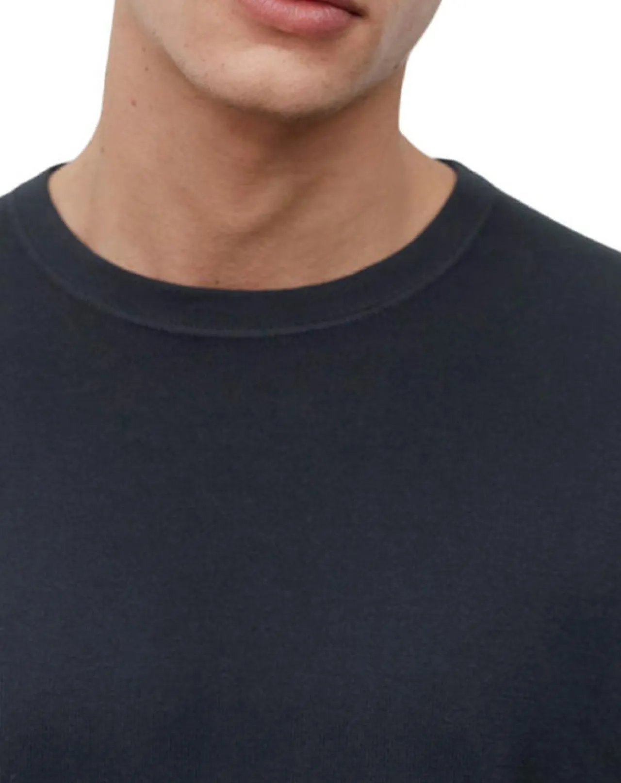 De coupe Regular Fit agréable à encolure ronde classique et fines bordures côtelées au bas des manches et sur la base droite.