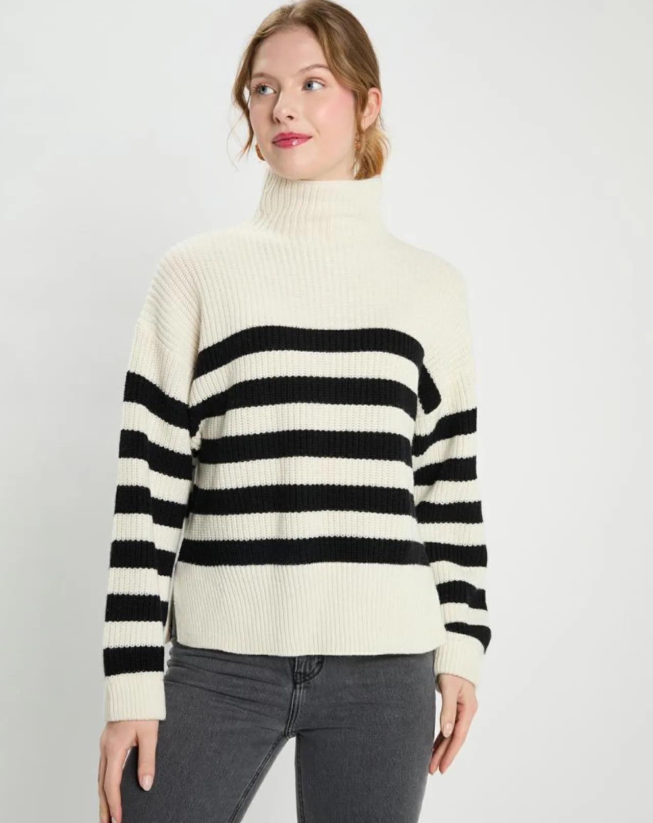 Ce pull col roulé Galeries Lafayette en laine et cachemire est doté de rayures, de manches longues, d’un ourlet fendu ainsi que de finitions côtelées.