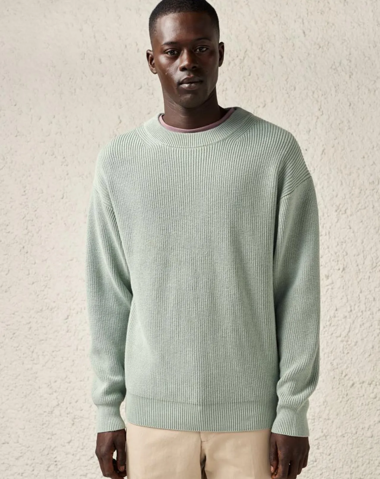 Maille côtelée, col double et épaules tombantes