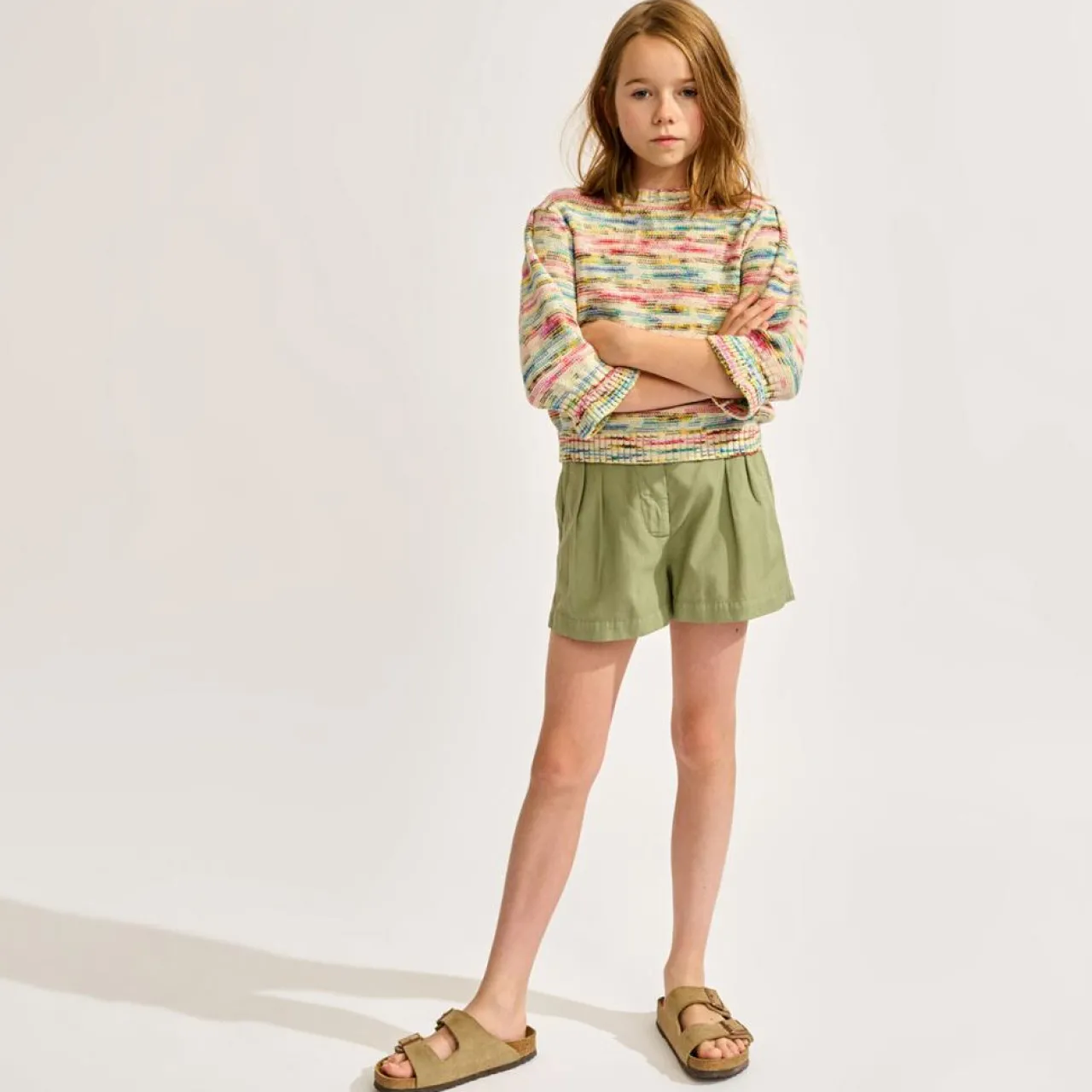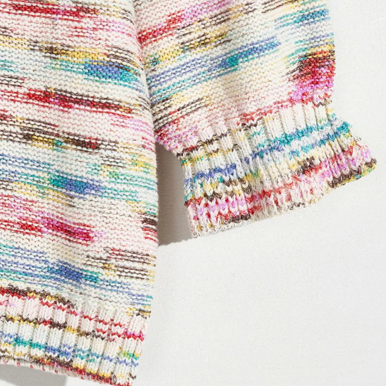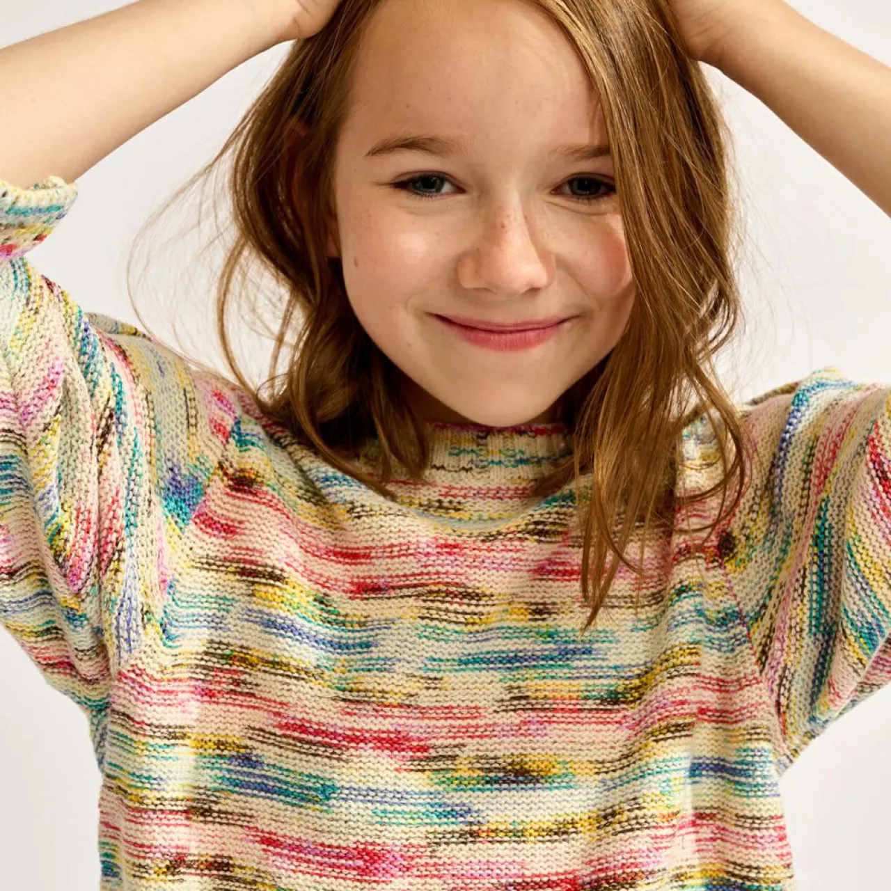 Le pull GETOX est tricoté à partir d’un mélange multicolore de coton et polyester recyclé