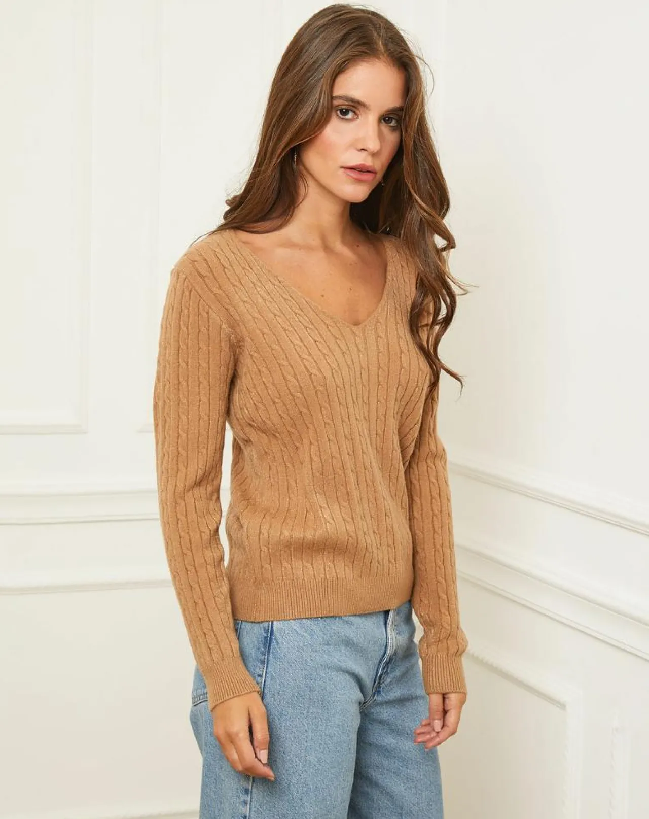 Pull col V, torsadé, manches longues