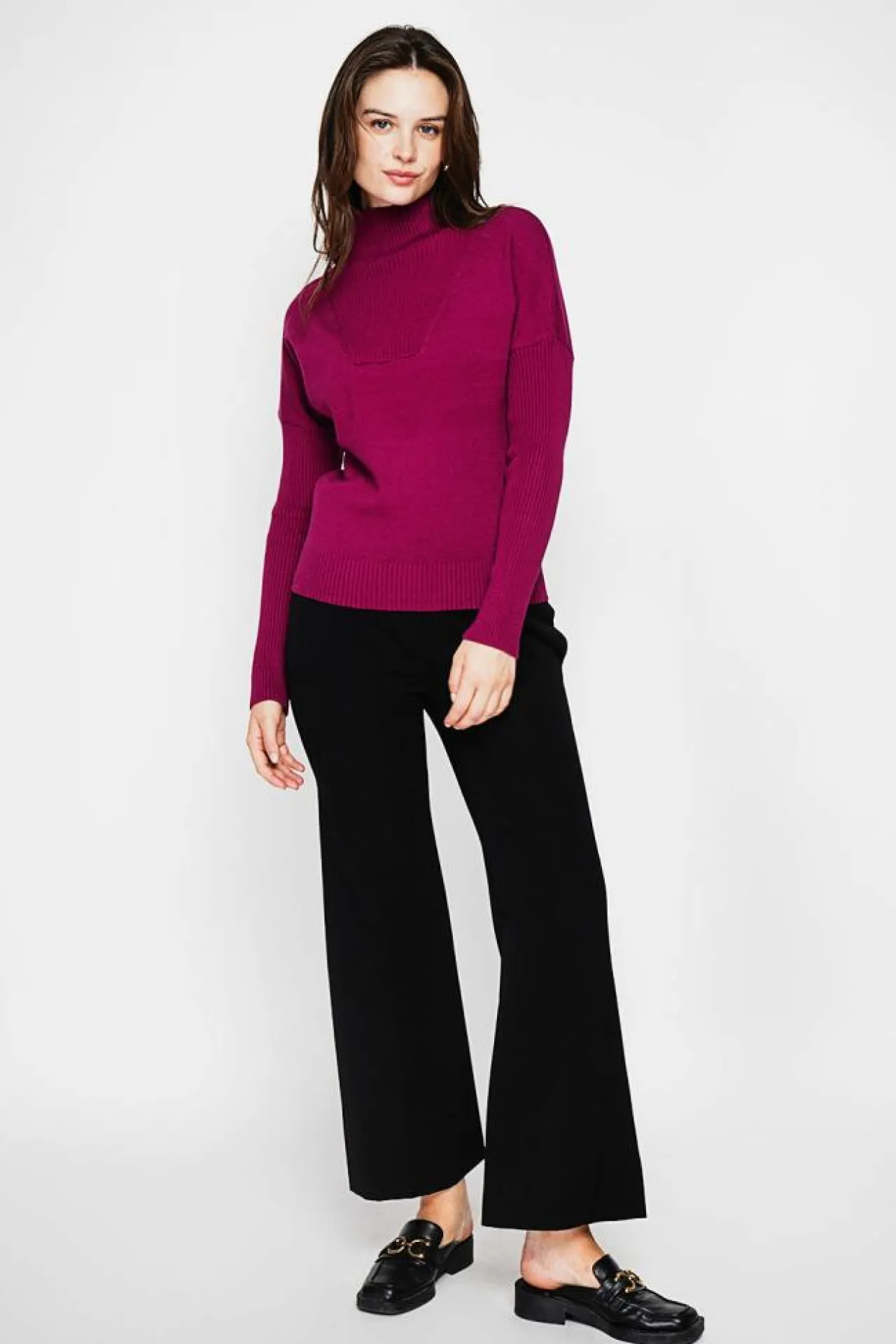 Pull col roulé coupe oversize en cotes à manches longueur
