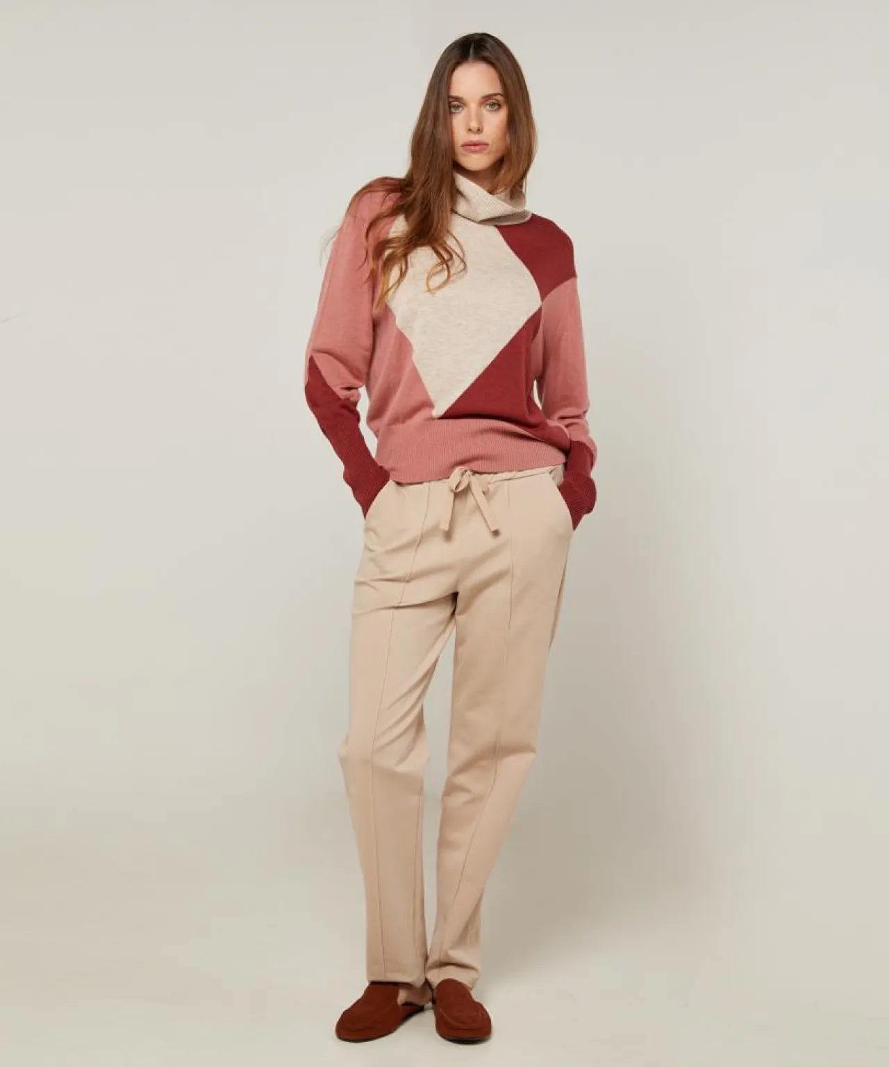 Pull Mylène en Laine mélangée beige/rose