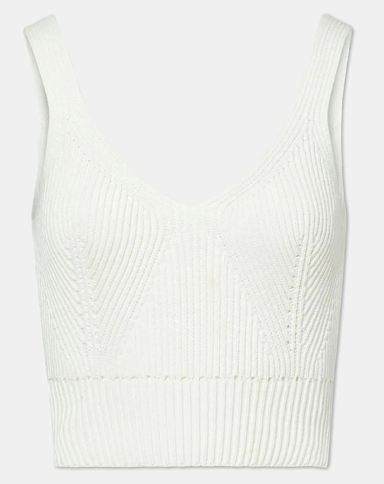 Disponible en couleur écru, le pull Natura est un débardeur offrant un décolleté flatteur et féminin