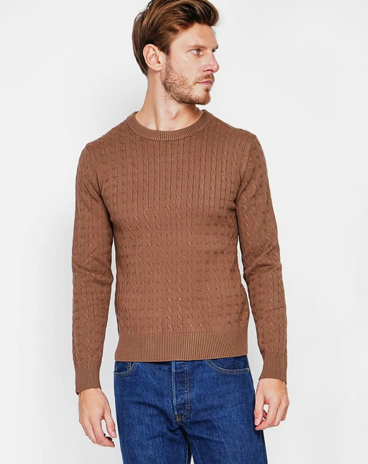 Pull col ras du cou torsadé à manches longues