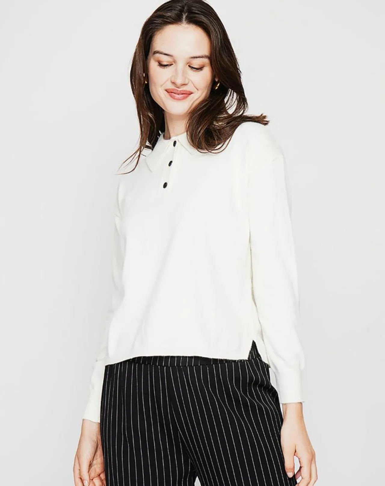 Pull col polo Bords côtelés Coupe oversize à manches longues