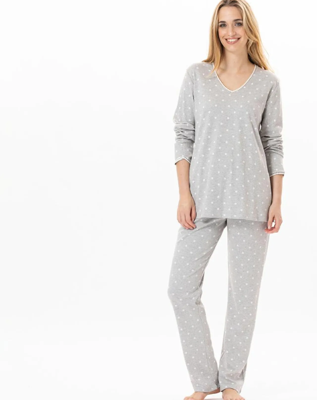 L’imprimé à pois écru, un basique incontournable, est ici décliné sur trois variantes de fond faciles à assortir : rose poudré, bleu de Prusse et gris chiné.