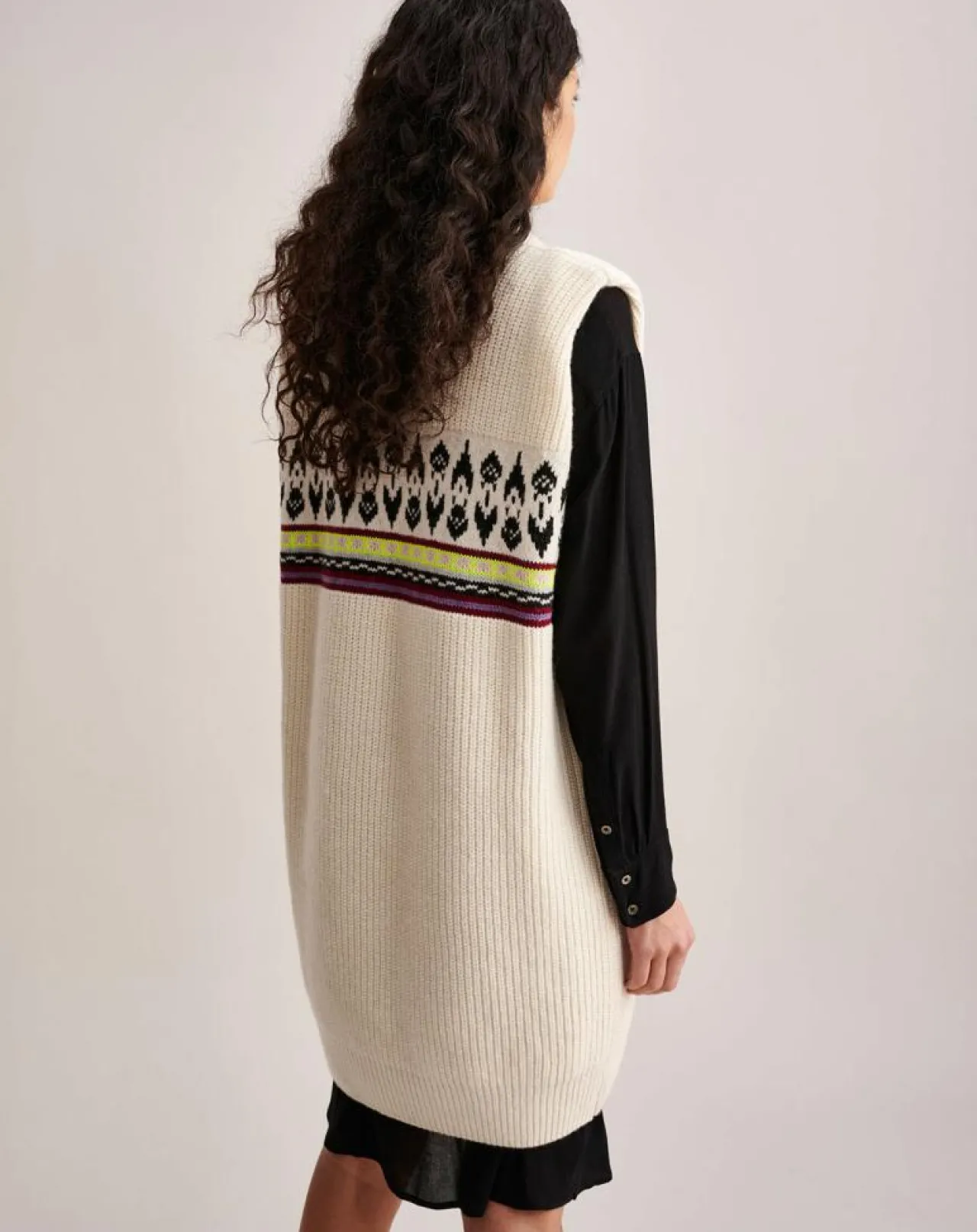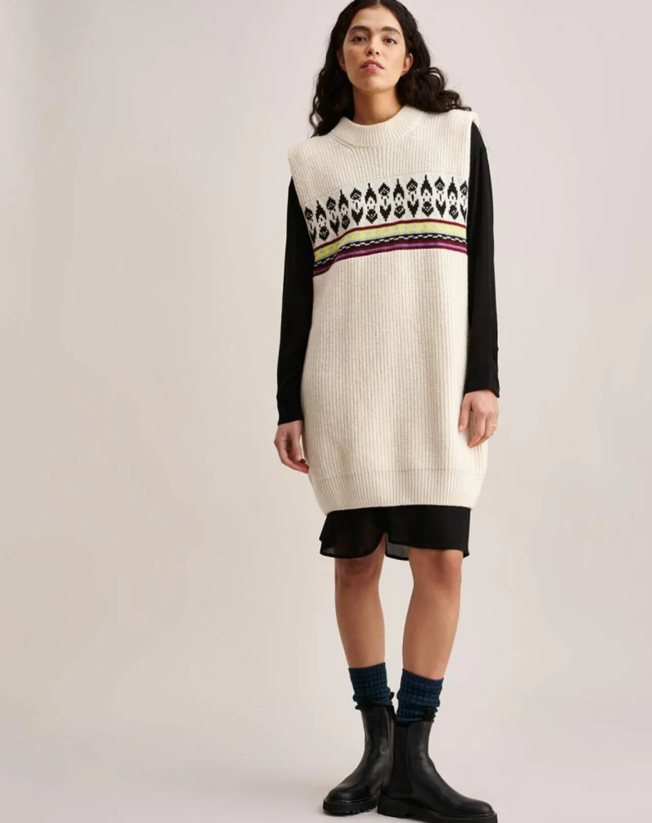 Tricotée en pure laine, la robe Aiqe est la version branchée du gros pull sans manches