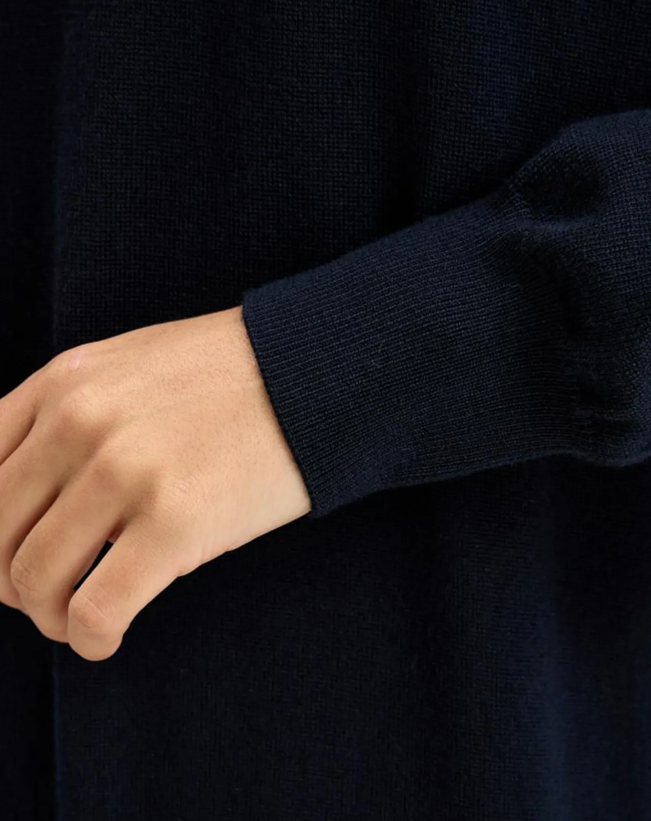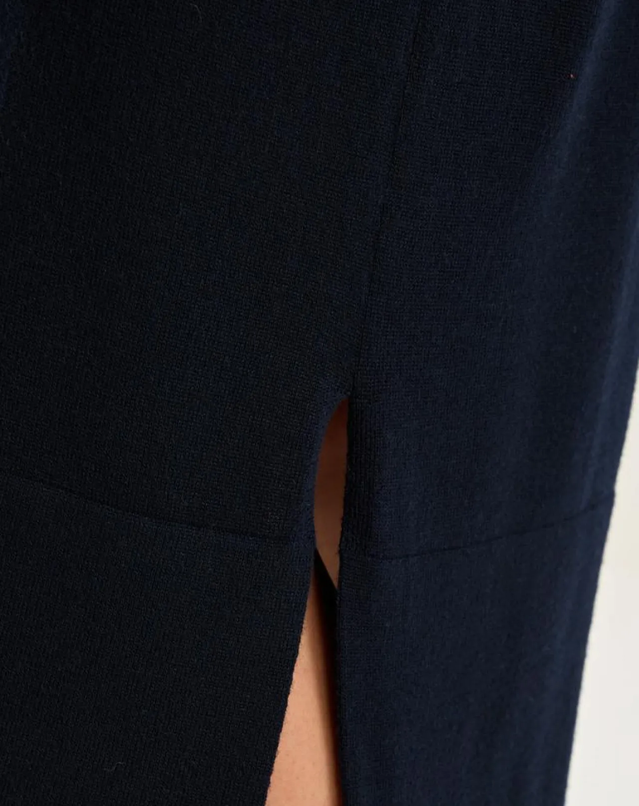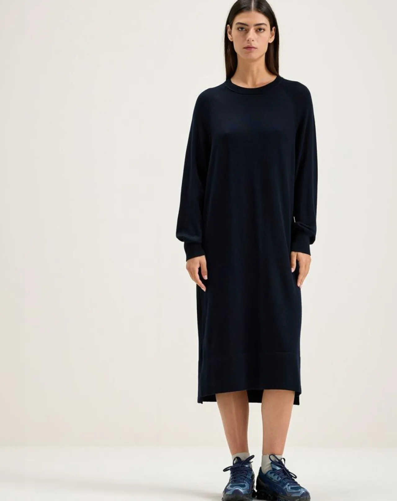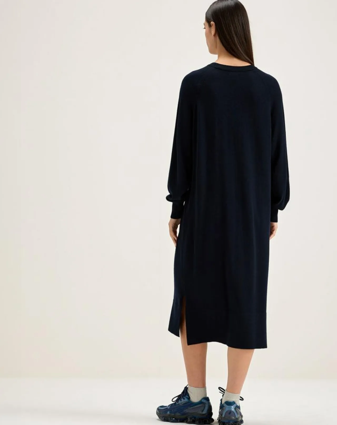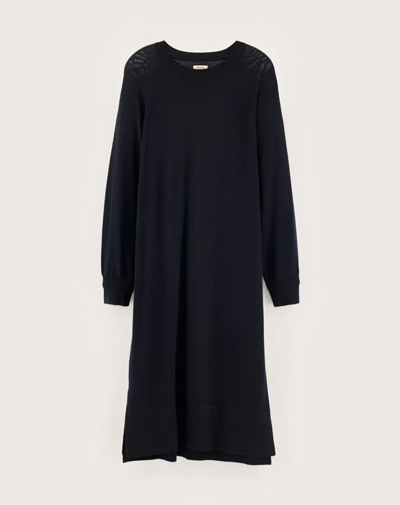 Robe pull en mérinos extra fin bleu marine, manches raglan et fentes latérales