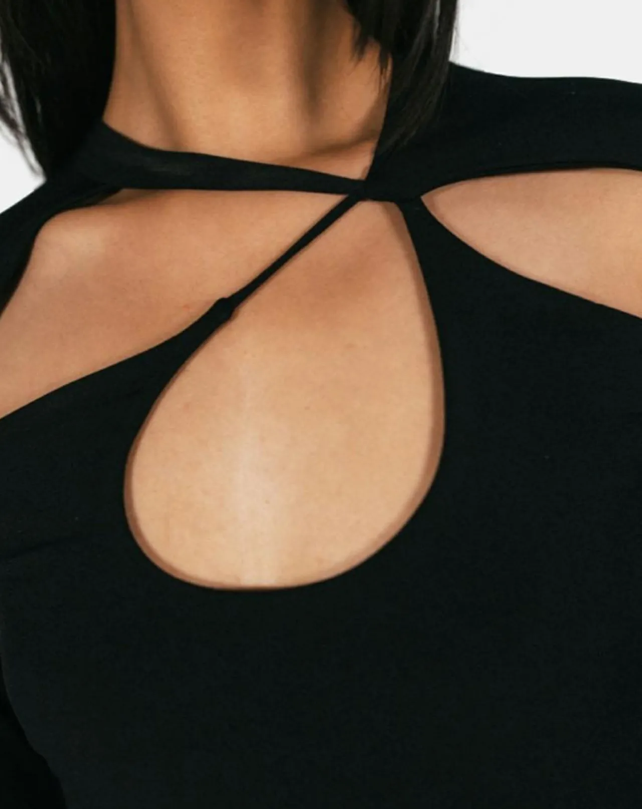 Cette robe longue Musier séduit par sa coupe asymétrique et ses découpes au niveau du décolleté.