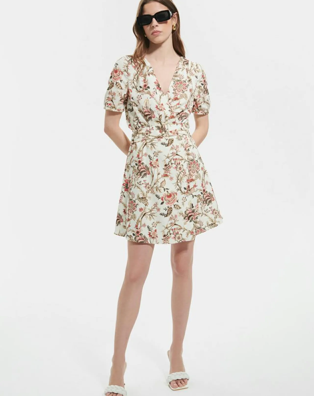 La robe RUSSELINA, arborant un délicat imprimé floral rétro, séduit par son côté féminin