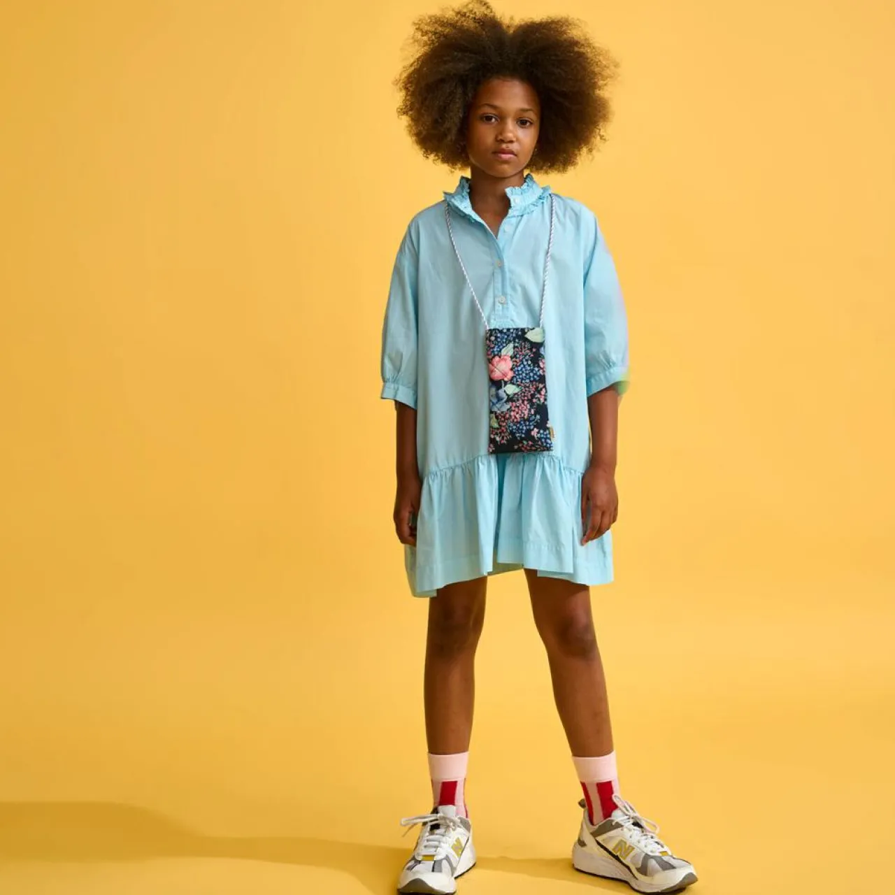 Confectionnée en popeline craquante de pur coton, la mini-robe AVRIEL booste la silhouette en volume avec des manches bouffantes, un col à froufrous et des volants sur le bas