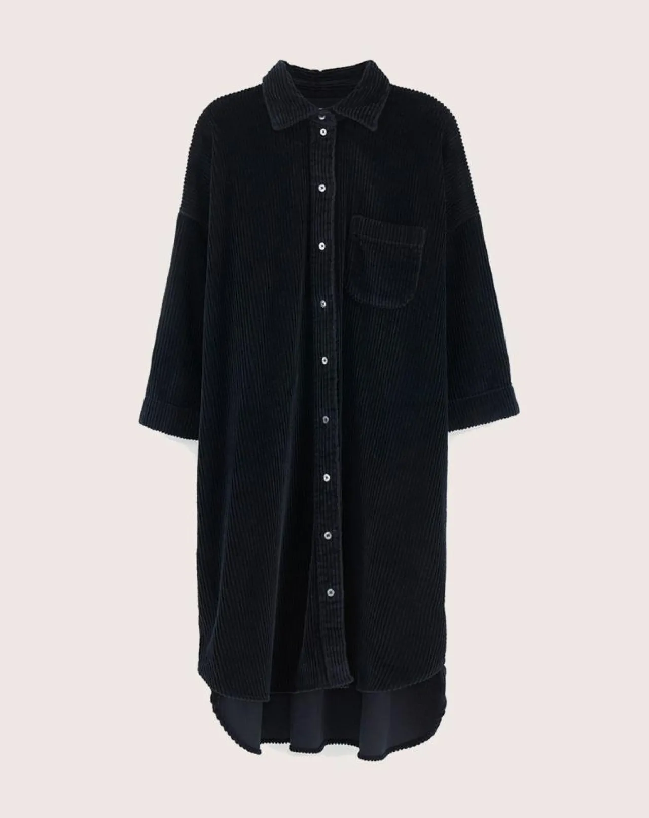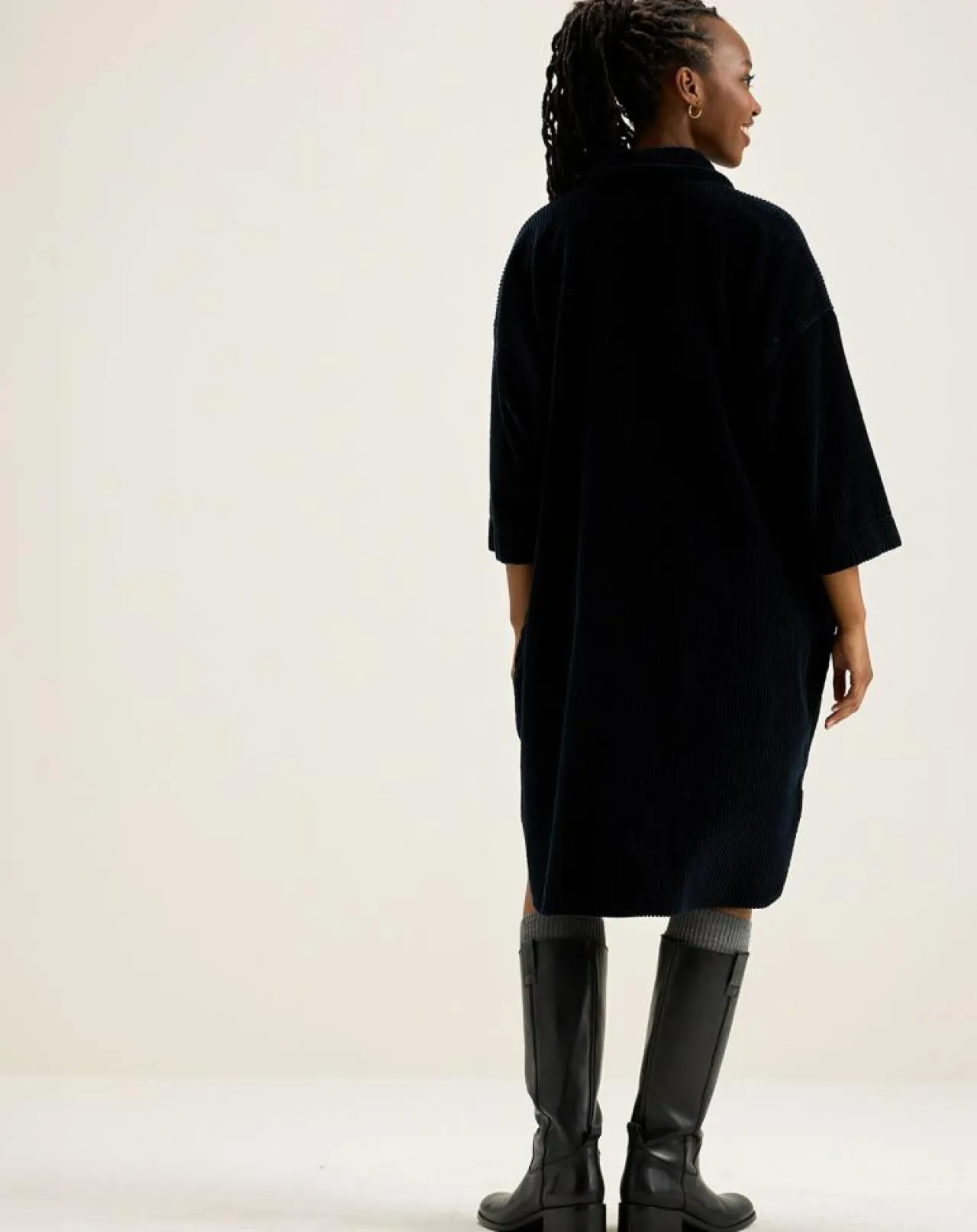 Robe-chemise oversize en velours de coton à côtes larges couleur bleu