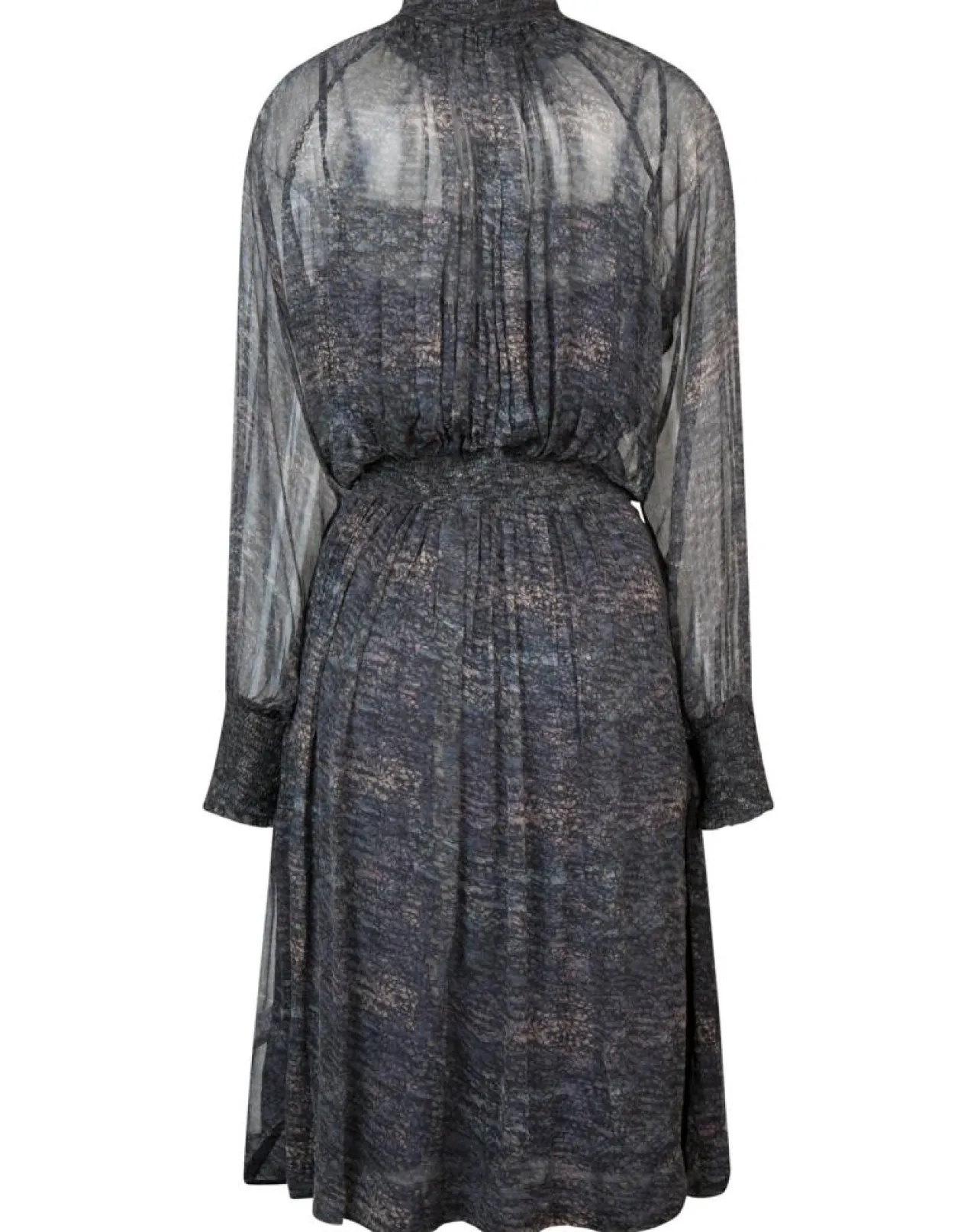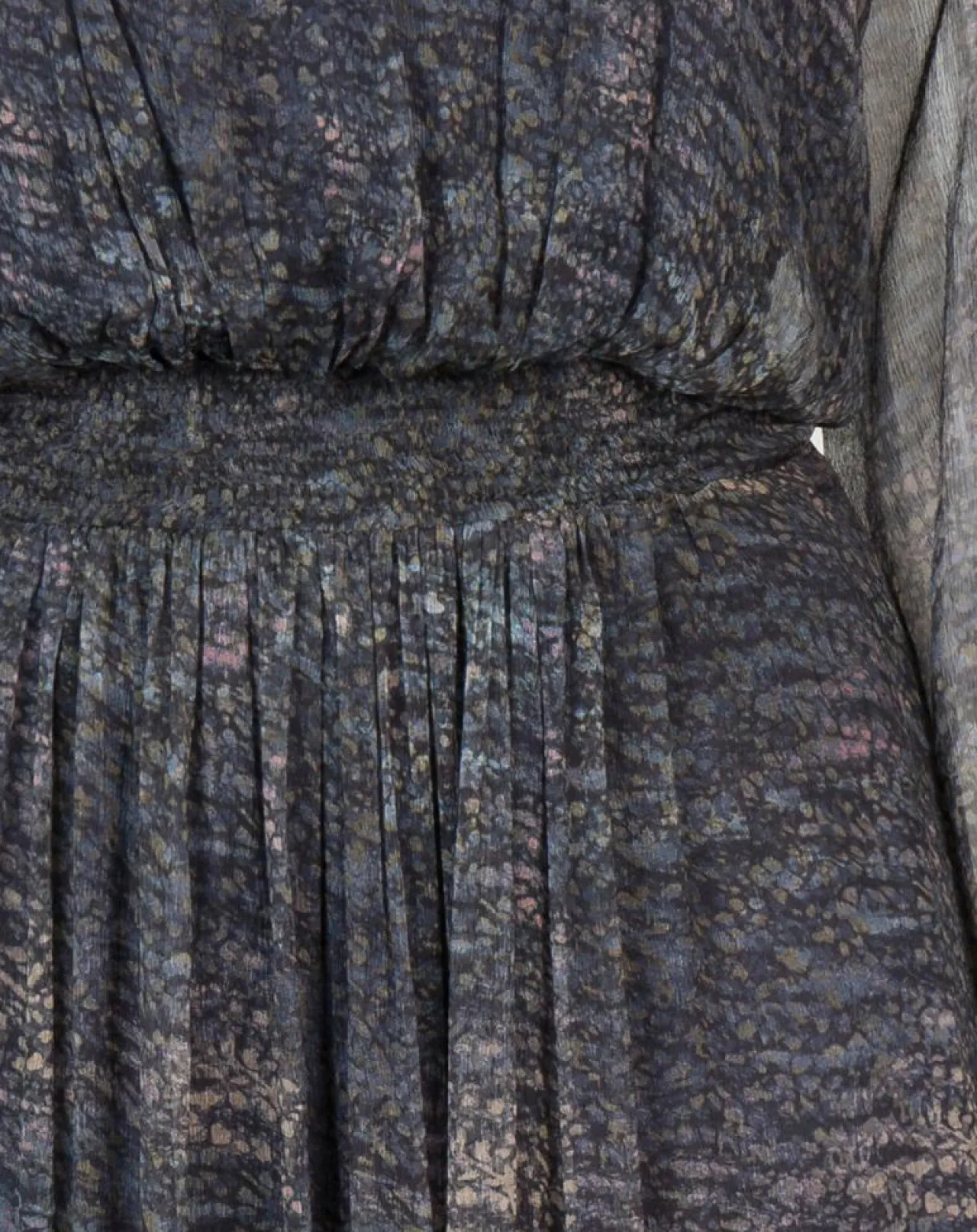 Notre robe Giuletta en mousseline imprimée adopte une coupe ample, soulignée par une taille smockée