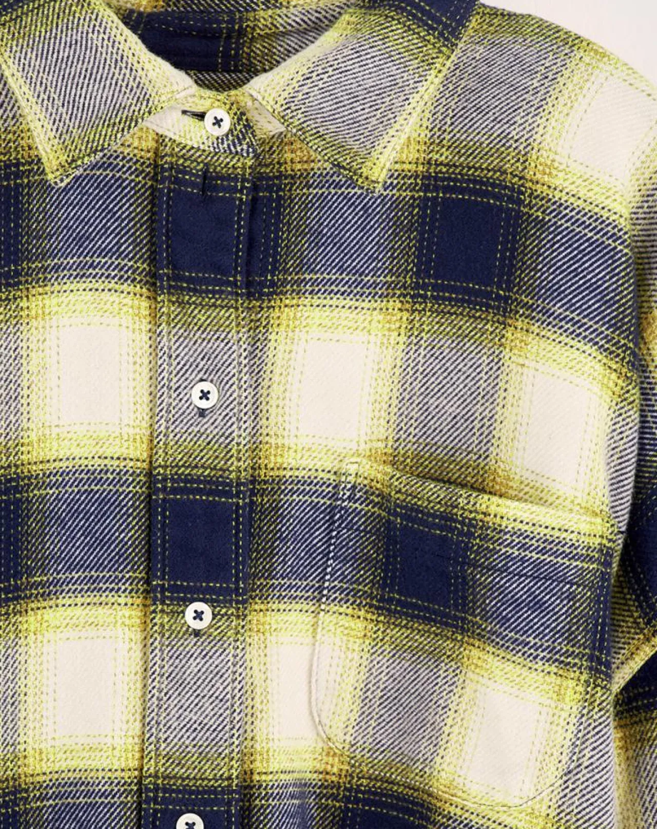 Robe chemise oversize en coton brossé à carreaux gris et jaune