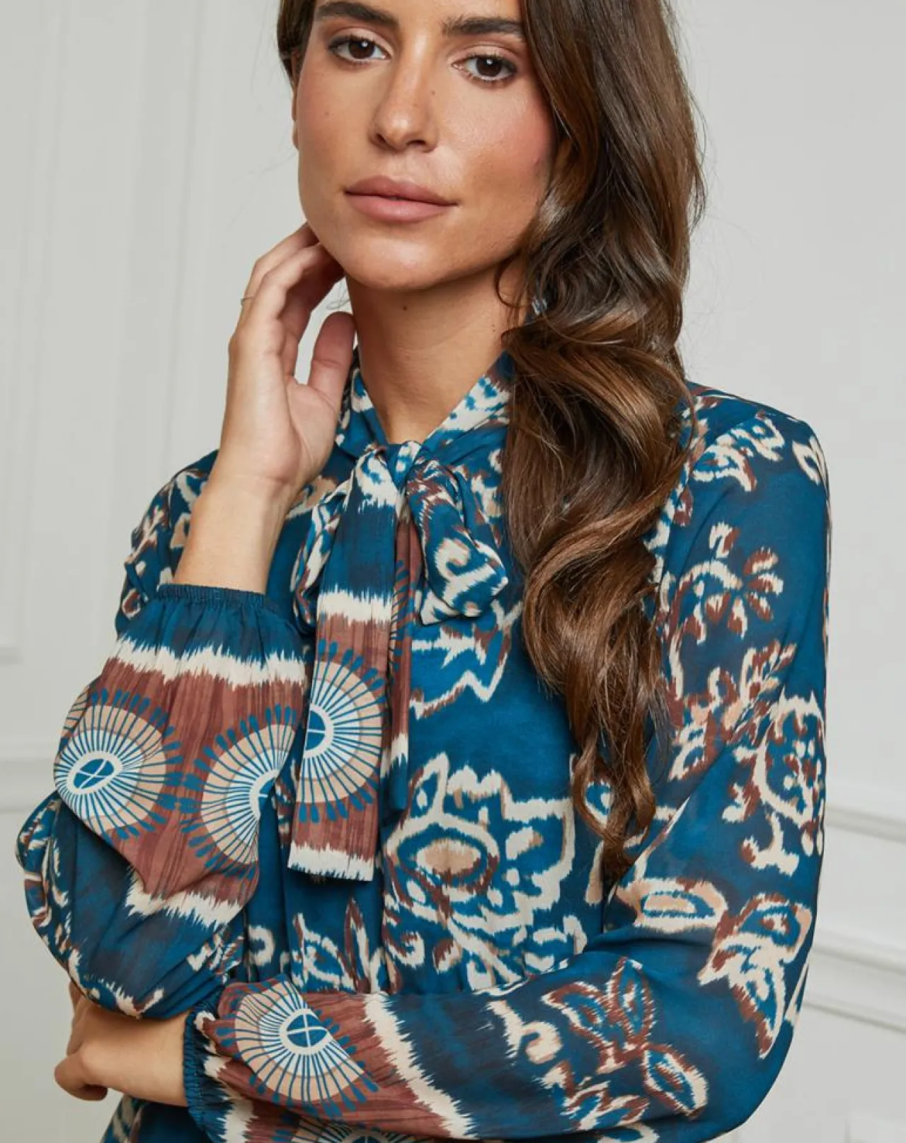 Robe mi-longue Imprimée avec un noeud au niveau du col