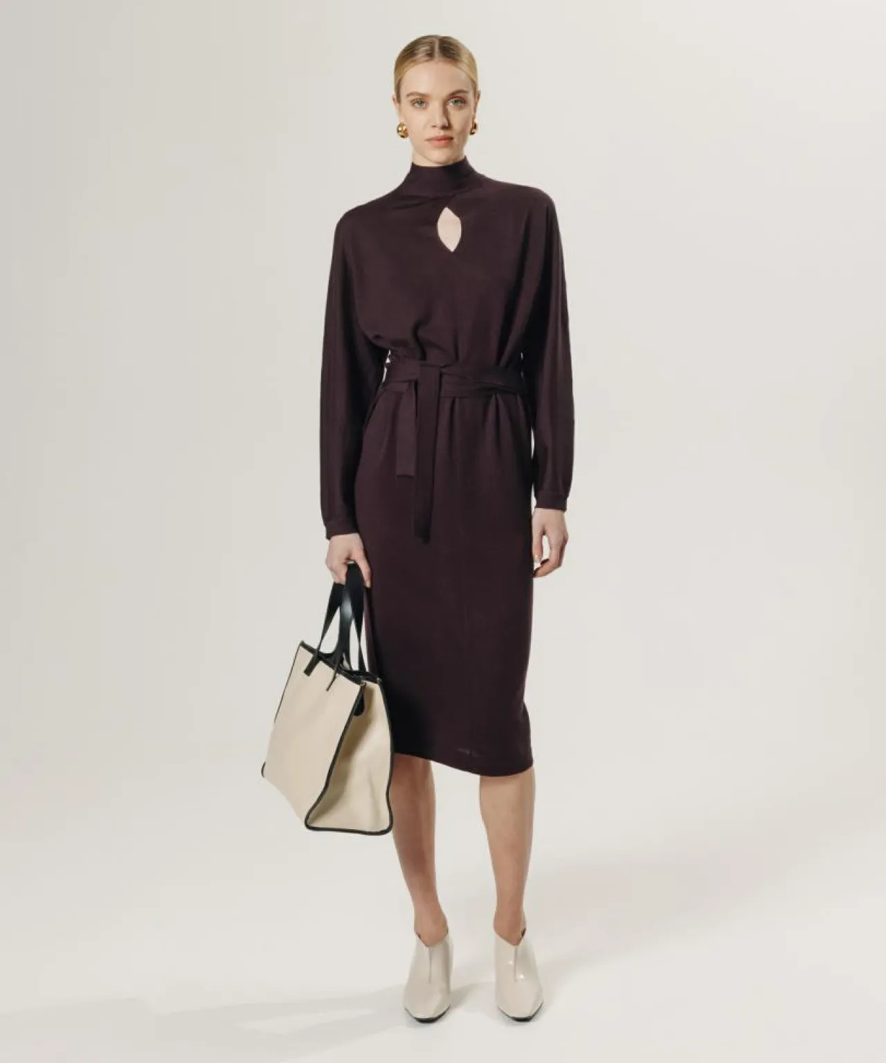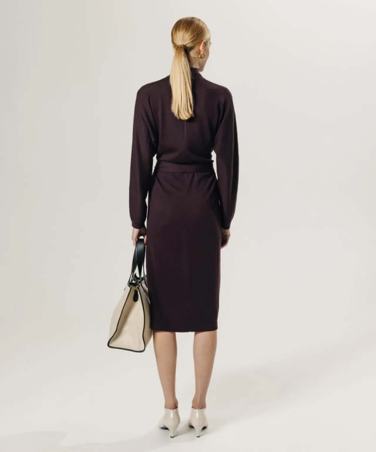 Robe longue Cali 100% Laine laine ceinture violet aubergine