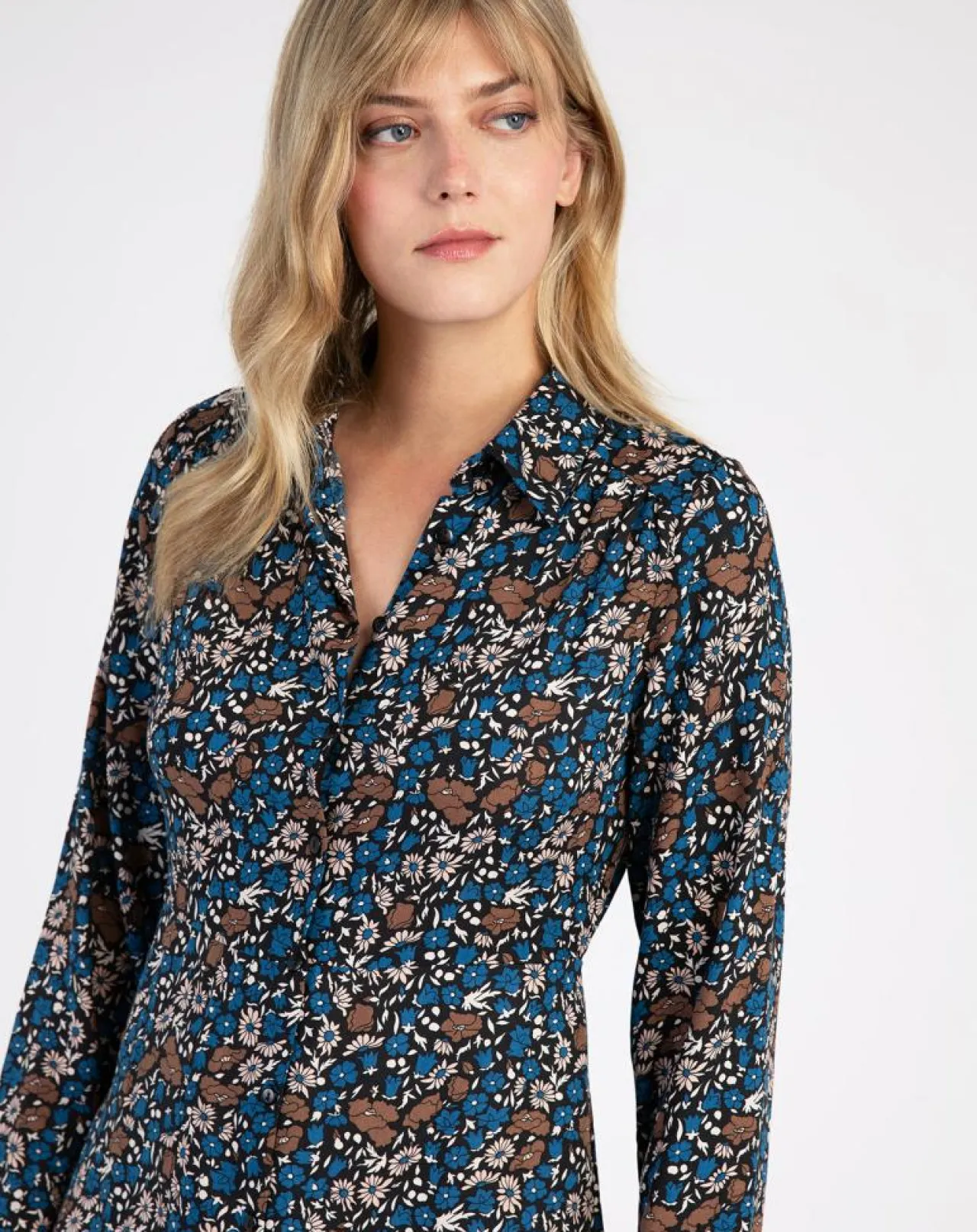 Cette robe midi MANTRY associe un col chemise et des manches longues légèrement ajustée