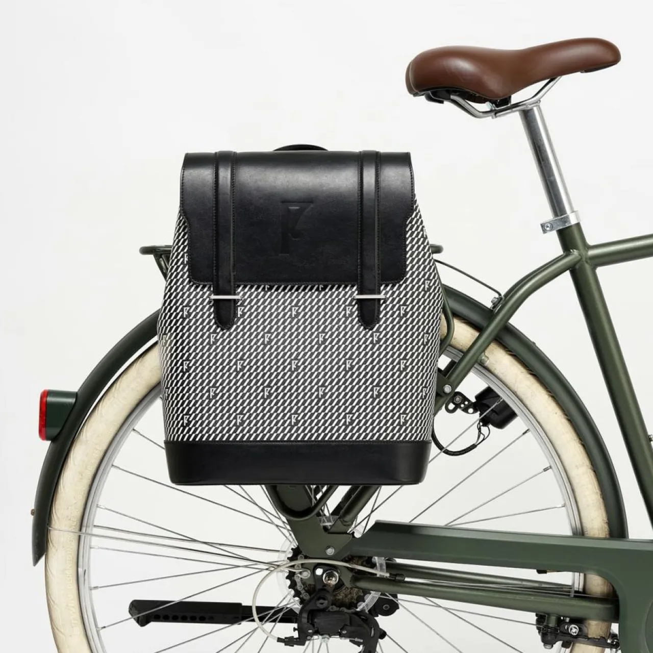 Ce sac à dos unisexe s’accroche sur les porte-bagages avant ou arrière, grâce à la plaque signature FARET en cuir