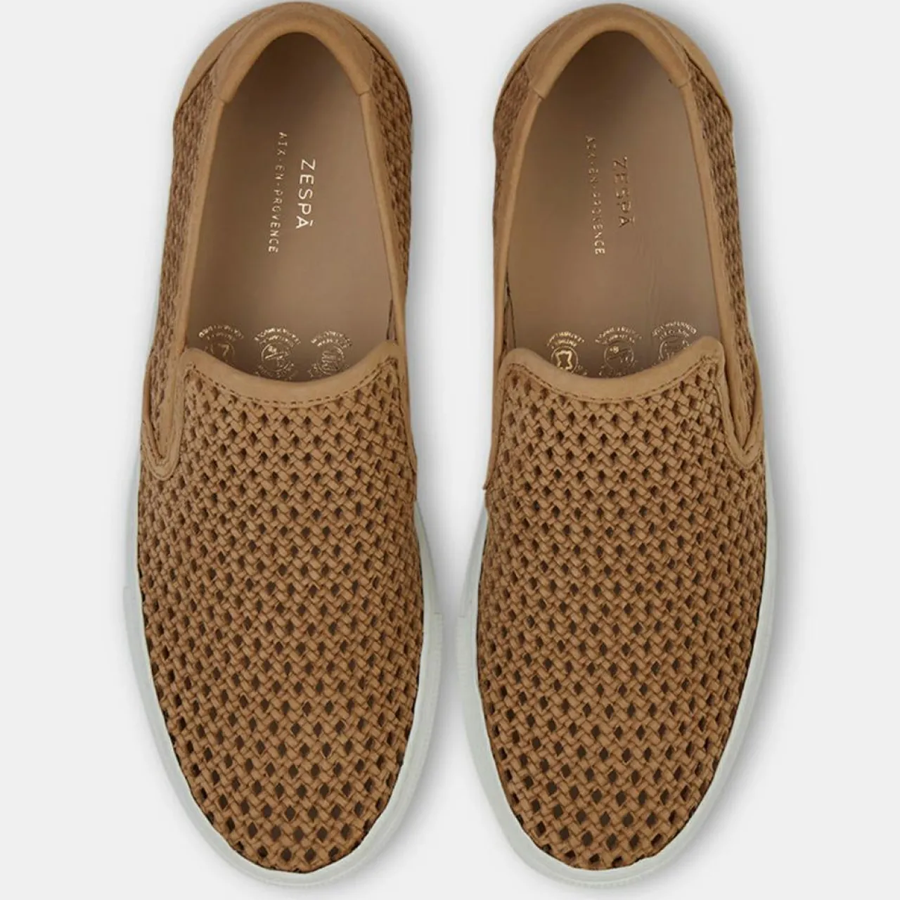 Ces baskets basses slip-on basses Zespa confectionnées en cuir de vachette ajouré lisse et suédé, présentent un bout arrondi, des goussets élastiqués sur les côtés et de la griffe contrastante floquée sur le col arrière.