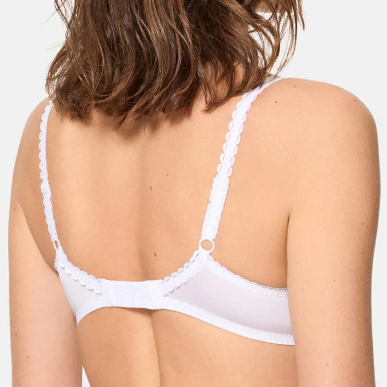 Mêlant microfibre et dentelle, ce soutien-gorge emboîtant blanc Flower Elegance Micro Recyclé est une véritable ode à l’élégance et au confort. Conçu avec des armatures, une structure dos en U et de larges bretelles, il garantit un maintien parfait jusqu’au bonnet E. Un délicat noeud satiné ajoute une touche finale de glamour à ce modèle. Ce soutien-gorge emboîtant vous séduira par sa féminité et sa modernité, c’est certain. Il incarne parfaitement l’alliance entre style et praticité, adapté à toutes les saisons grâce à son mélange de matières. Vous ne pourrez plus vous passer de ce sous-vêtement qui deviendra rapidement un essentiel de votre garde-robe !