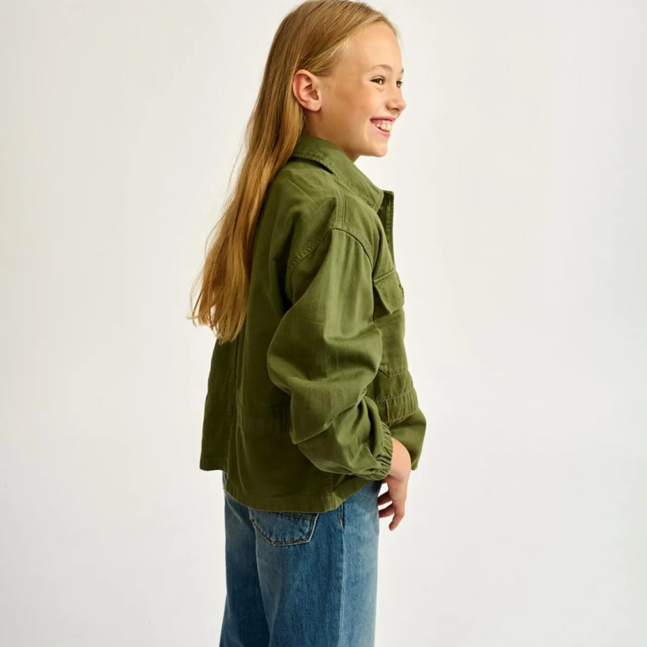 Confectionnée en denim 100% coton coloris kaki militaire, WAZUCAR figure un style authentique et une coupe oversize avec boutons métalliques, manches élastiques et taille à cordon