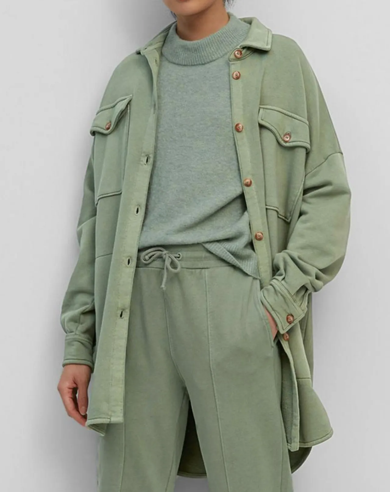 Le tissu de ce modèle est inédit : un molleton de coton biologique teint, lavé, super décontracté, doux et haut de gamme.