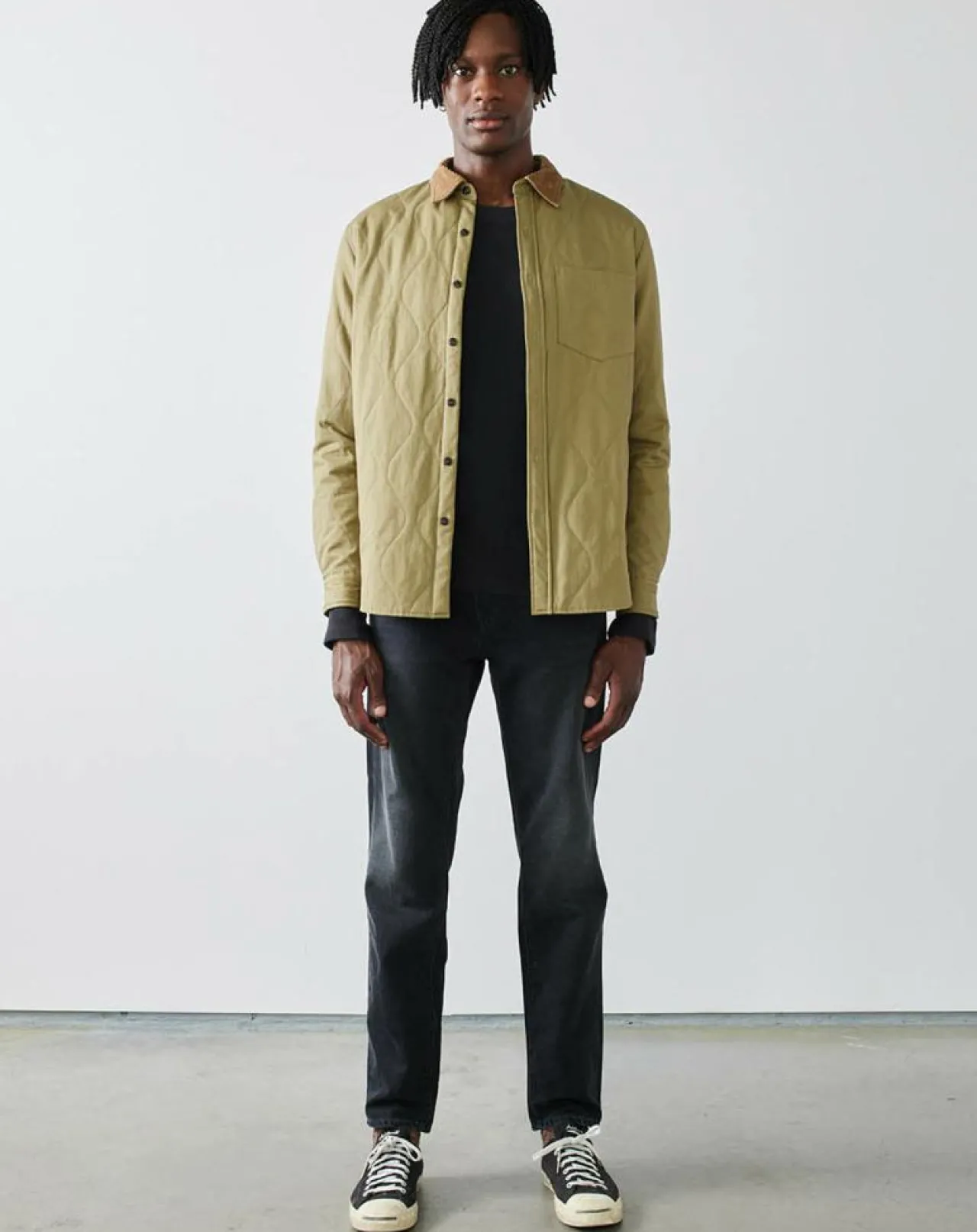 Fabriquée en coton premium et matelassé, elle présente une poche plaquée sur la poitrine et des bords arrondis pour une coupe classique décontractée