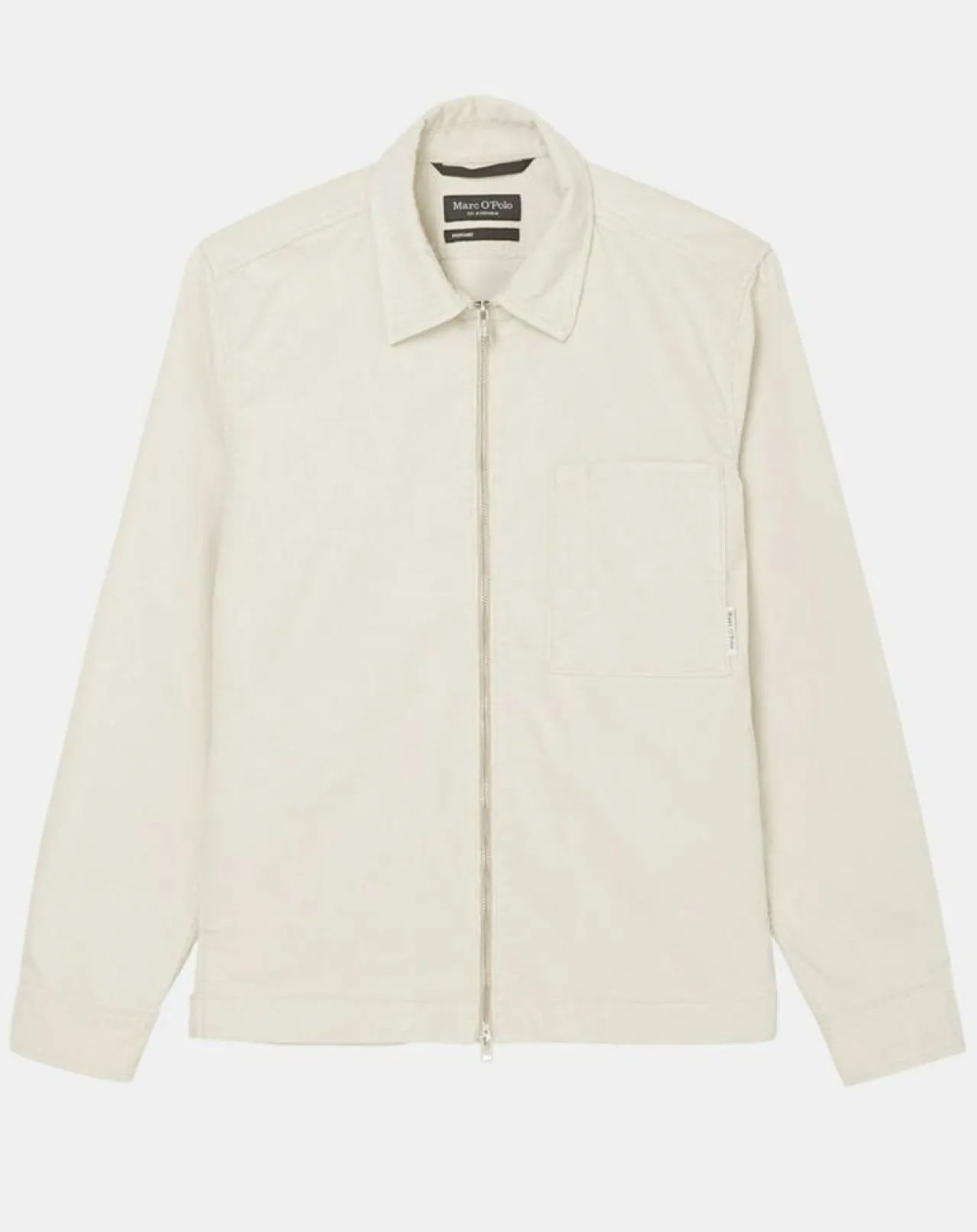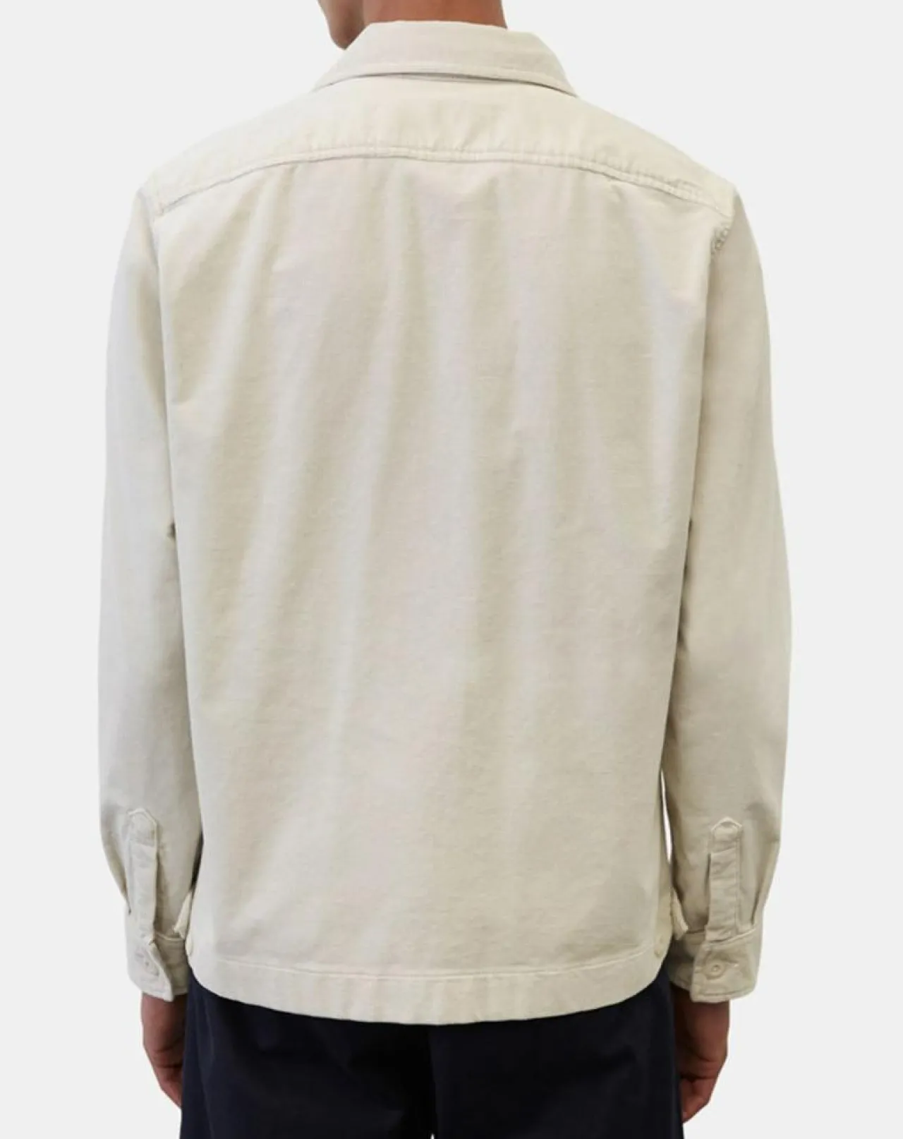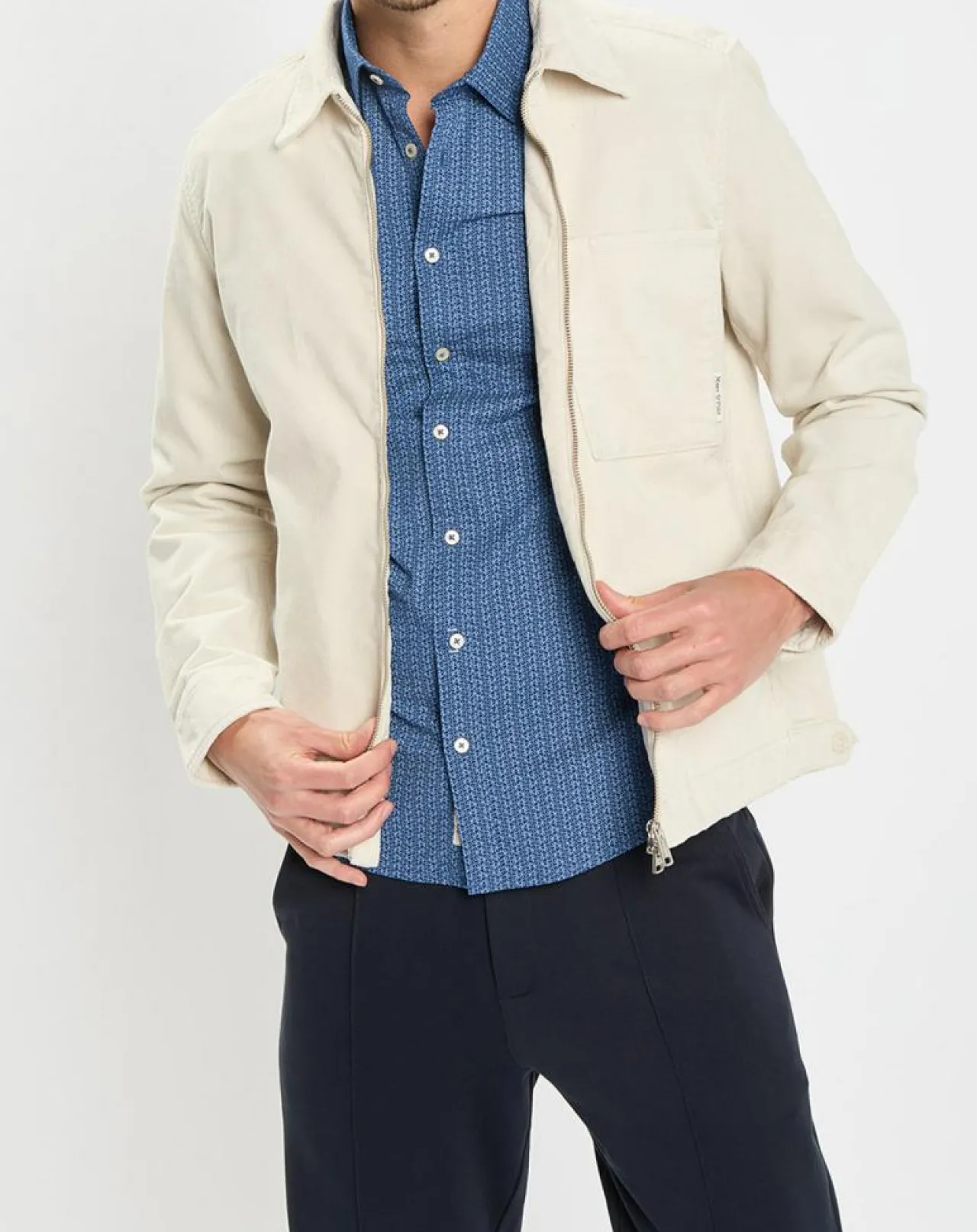 Surchemise décontractée avec col Kent, fermée par un zip à double curseur en métal, finition typique des manches avec poignets, base droite avec détails de brides au dos.