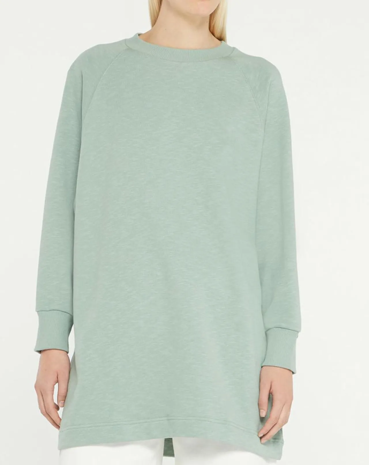 Ce sweat droit et long Galeries Lafayette est muni d’un col rond côtelé comme les poignets.