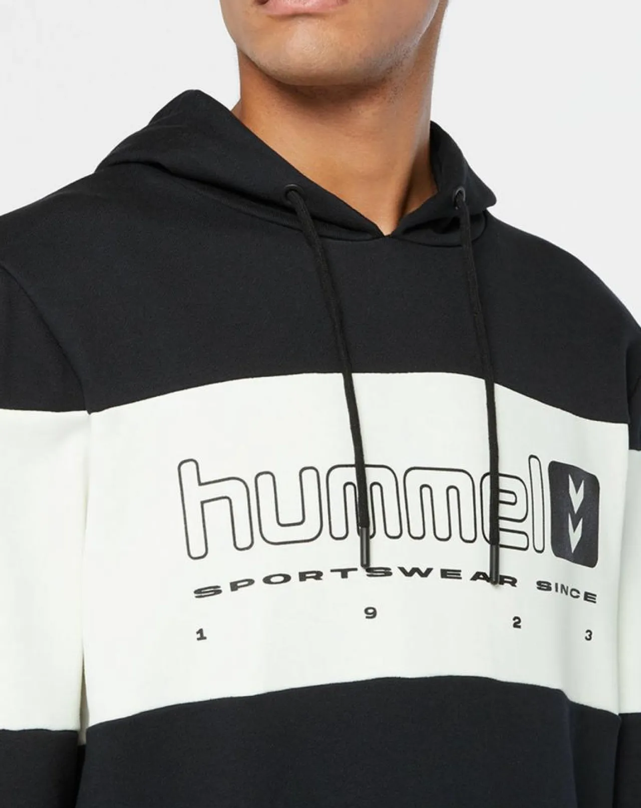 Ce sweat droit Hummel en coton bicolore molletonné est muni d’une capuche agrémentée d’un lien de serrage sur col rond, de manches longues, de la signature sur la poitrine et de finitions côtelées.