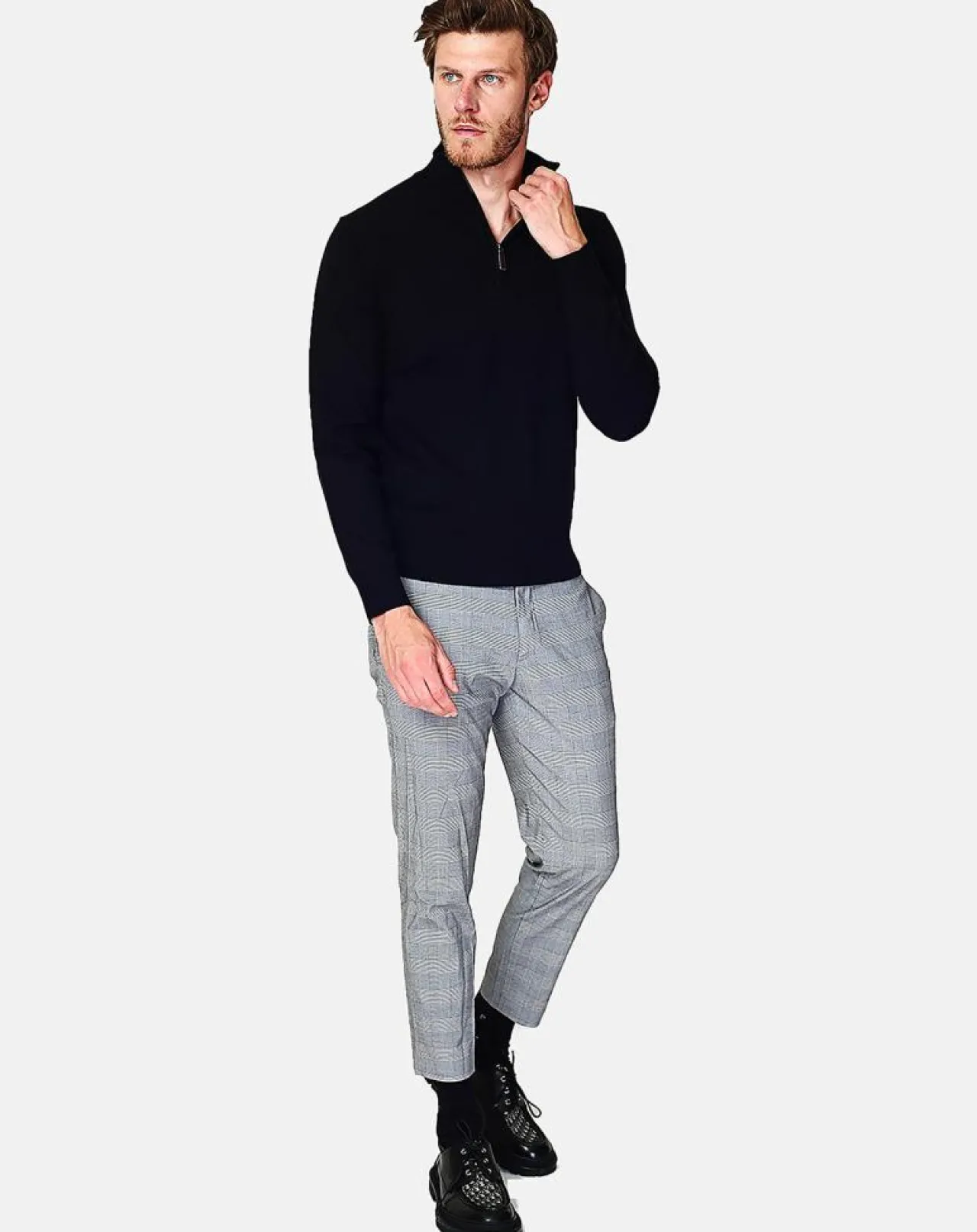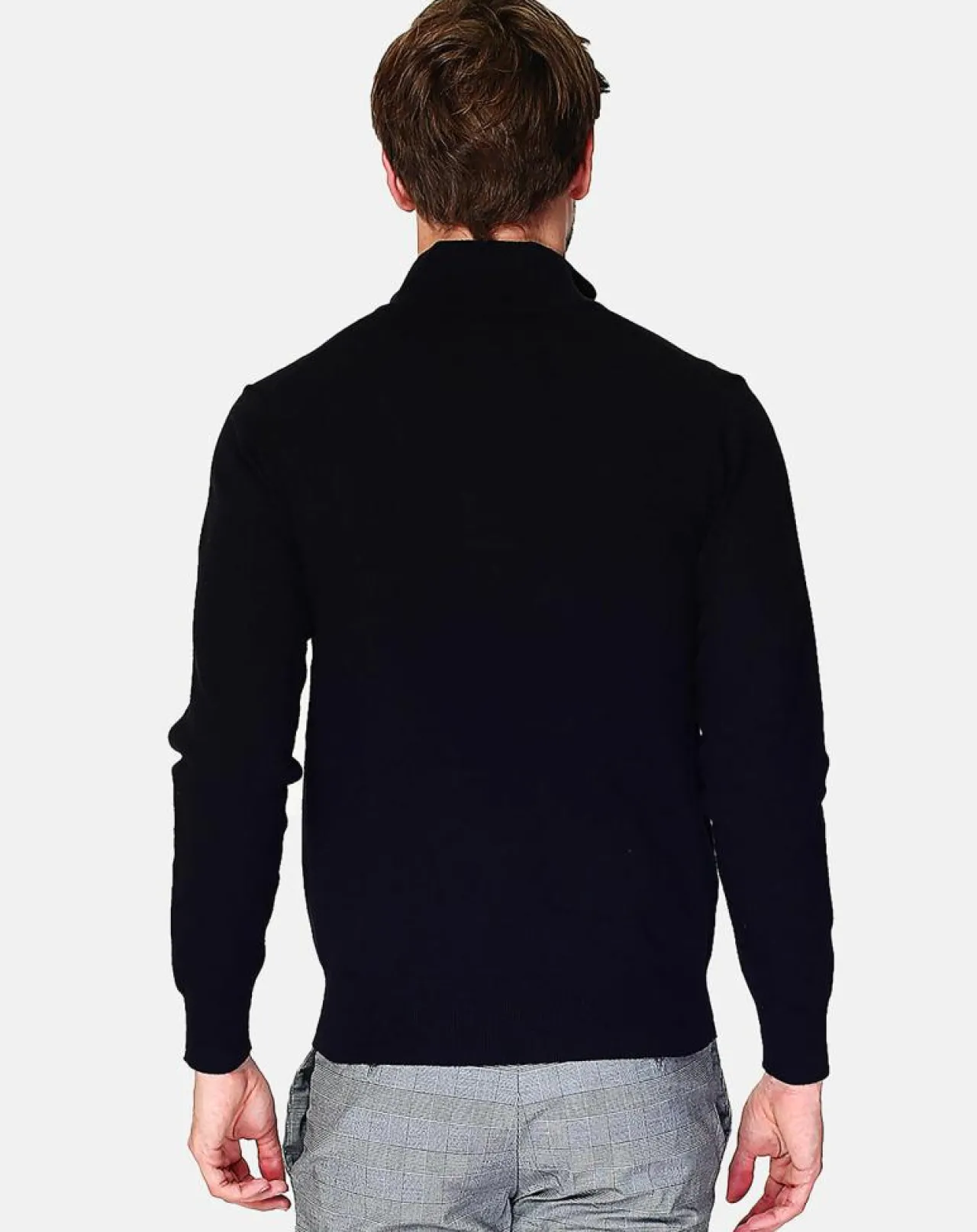 Pull col camionneur zippé à manches longues tricotage en 3 fils