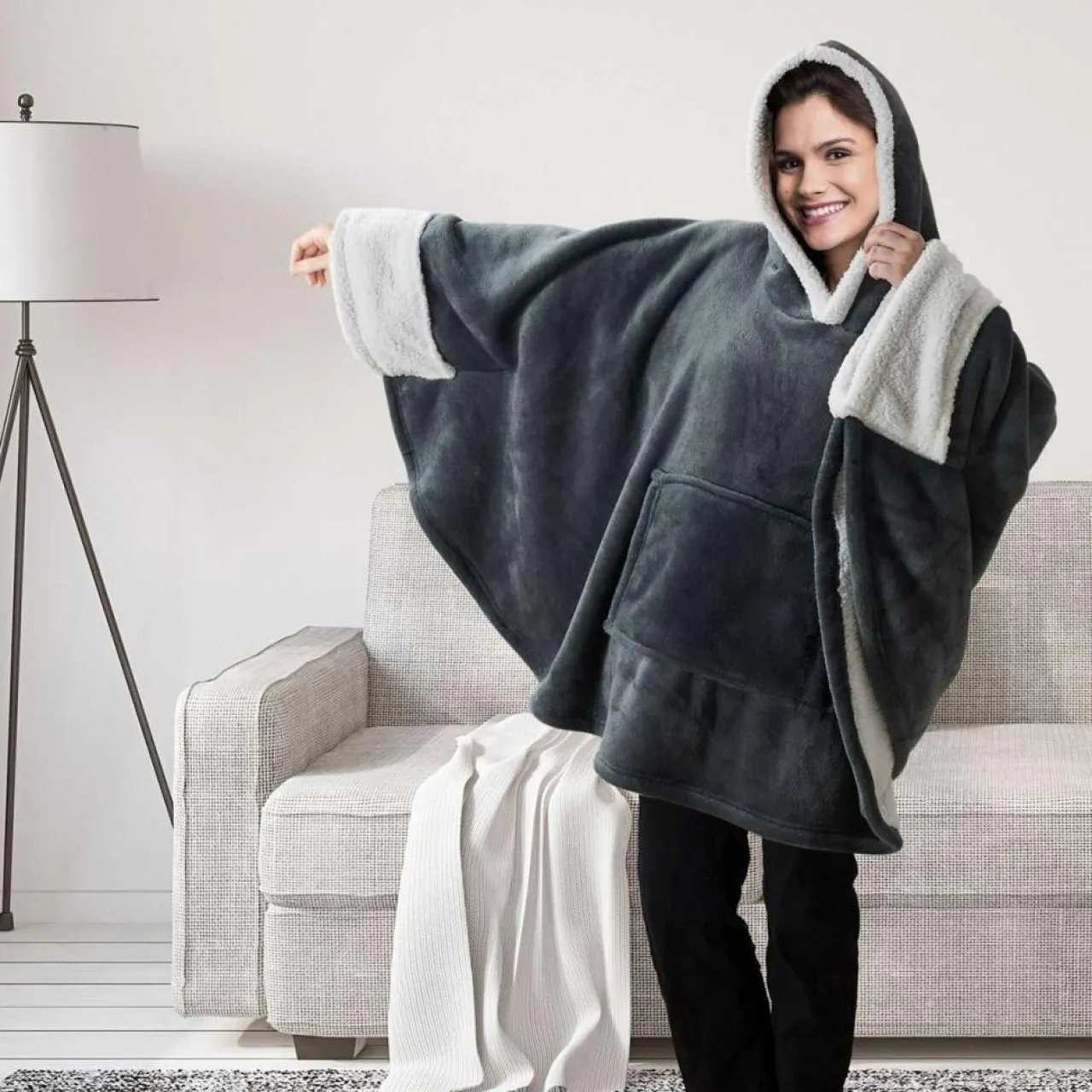 Fun et ultraconfortable, ce sweat plaid à manches et capuche fera le bonheur des frileux