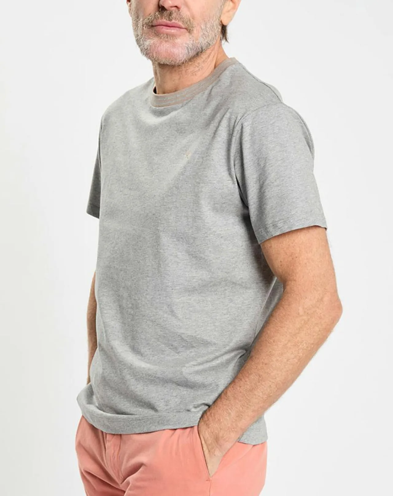 Ce t-shirt droit Hackett London en coton pima jersey est muni d’un col rond côtelé rayé et du logo brodé sur le côté gauche de la poitrine
