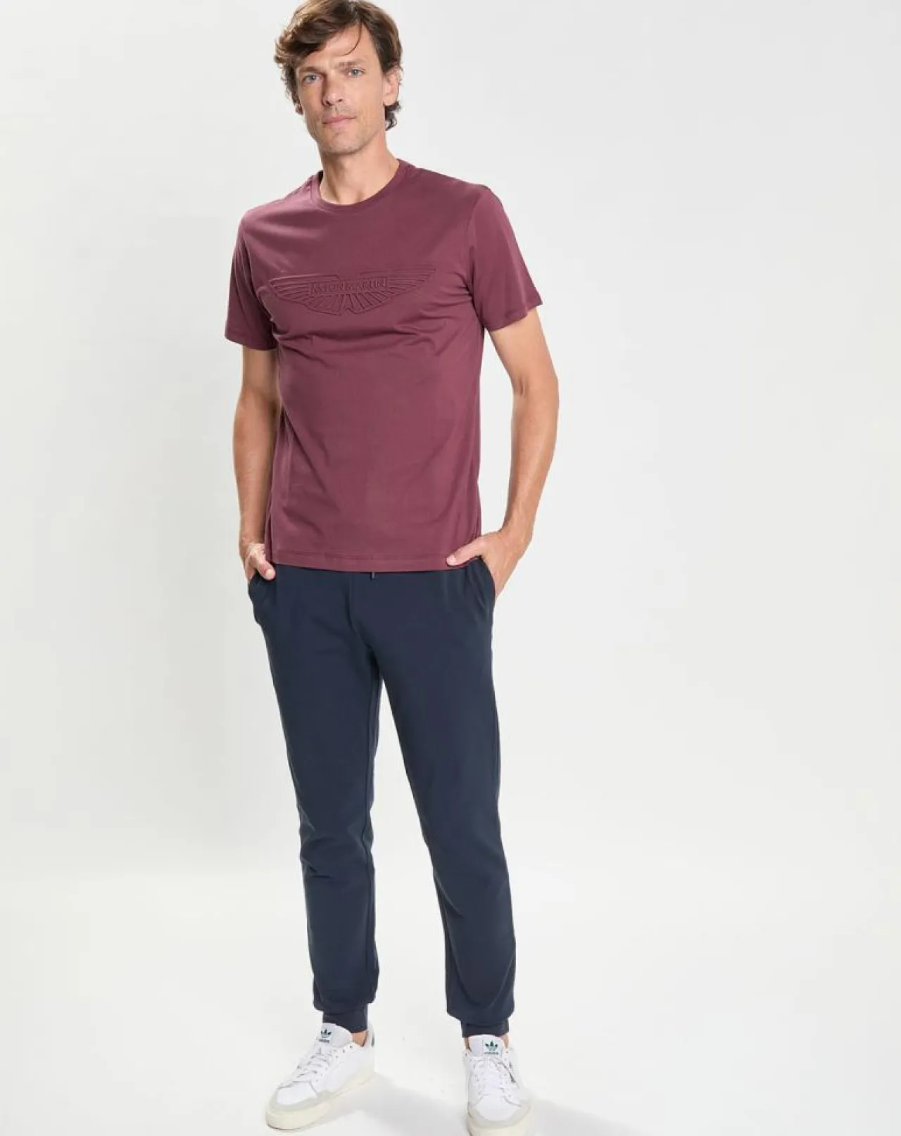 Ce t-shirt droit issu de la collaboration Aston Martin Racing x Hackett London en coton se pare d’un col rond côtelé et du logo embossé ton sur ton sur la poitrine.