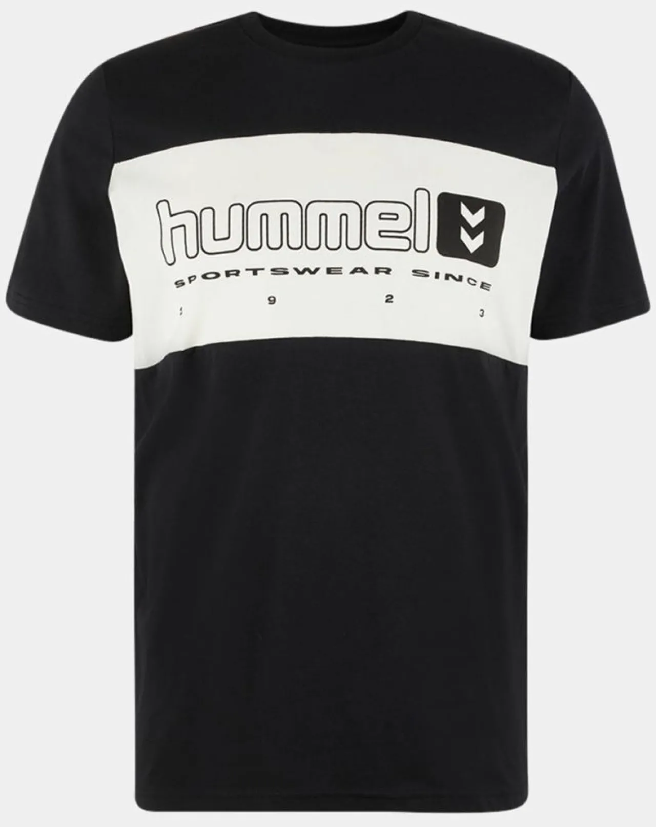 Ce t-shirt droit Hummel en coton tricolore sur l’avant est muni d’un col rond côtelé et de la signature appliquée sur la poitrine.