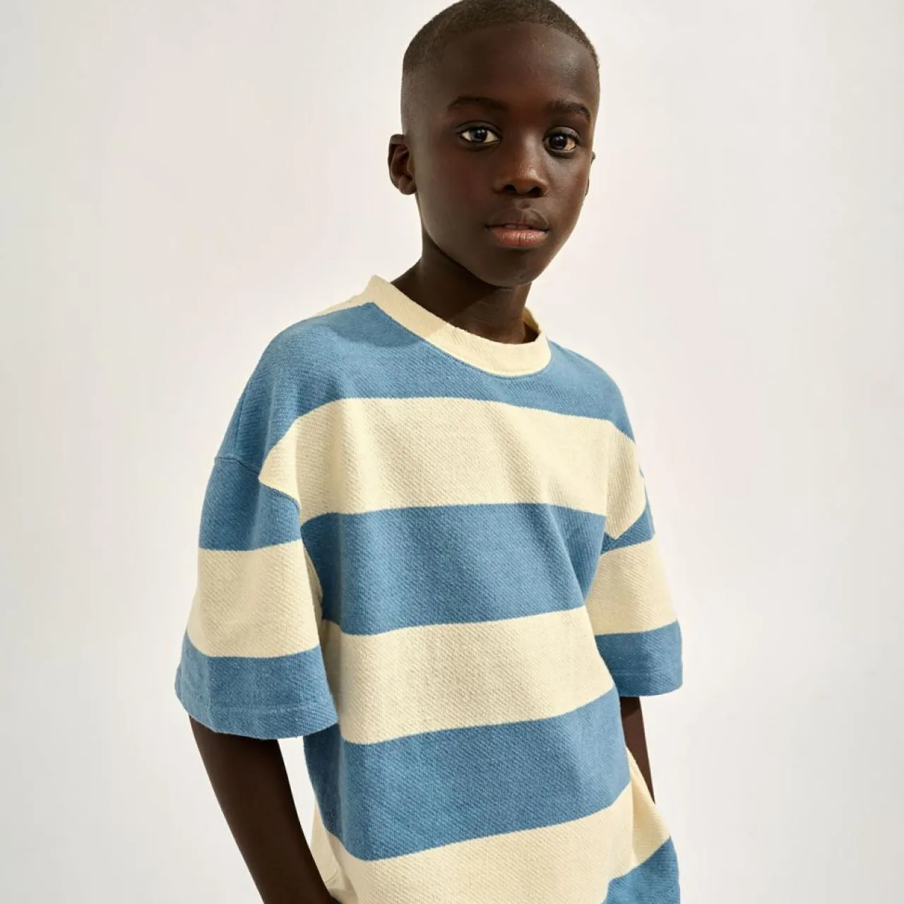 Confectionné au Portugal en coton épais avec une coupe oversize et des rayures contrastées, il assure une dégaine cool et décontractée