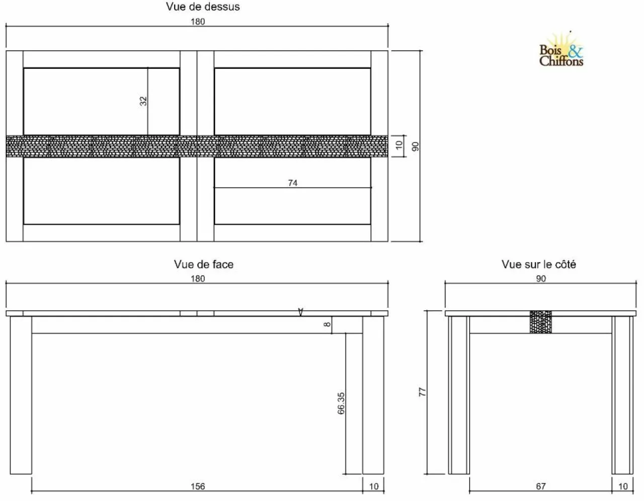 180x90x77 cm