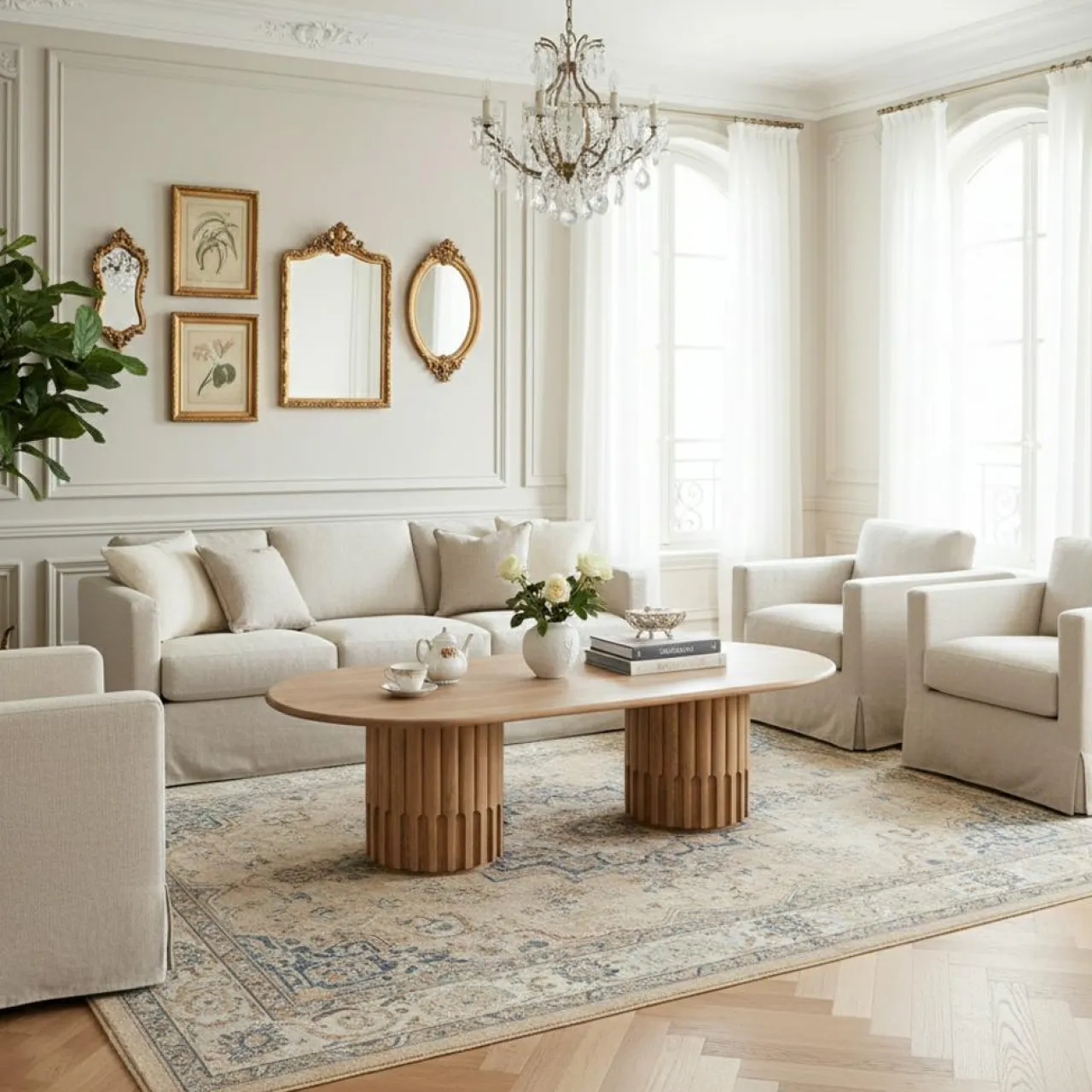Fabriquée à partir de matériaux de haute qualité, la table basse Dalta garantit durabilité et style. Les doubles bases en piédestal sont finement conçues avec un motif cannelé, offrant à la fois stabilité et attrait esthétique distinctif. Cette table sert non seulement de pièce fonctionnelle pour votre salon, mais également d’œuvre d’art qui rehausse la décoration globale de votre maison.