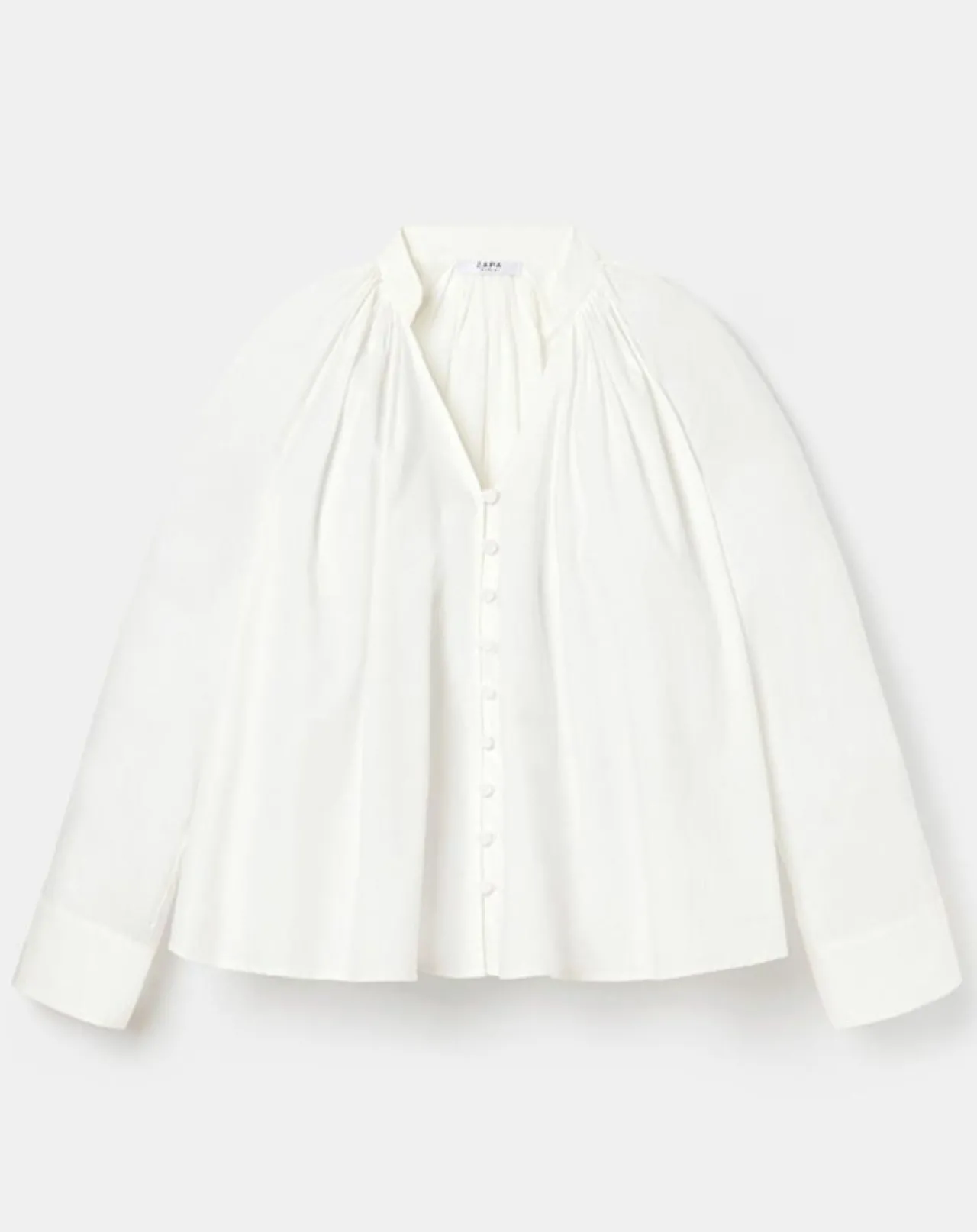 Blouse ample mettant en valeur des épaules drapées pour une allure élégante et décontractée