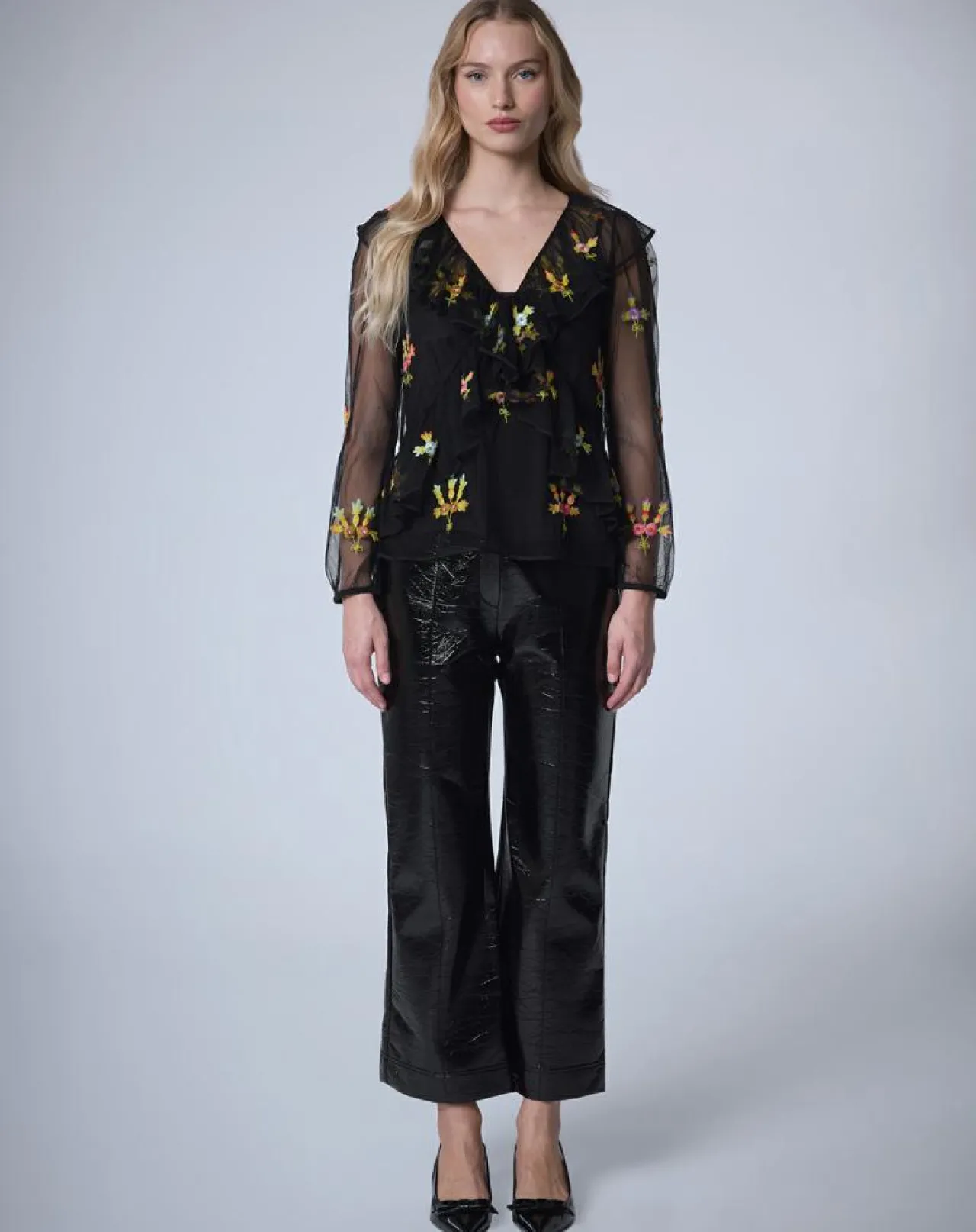 Col V volanté avec un effet croisé sur le devant.