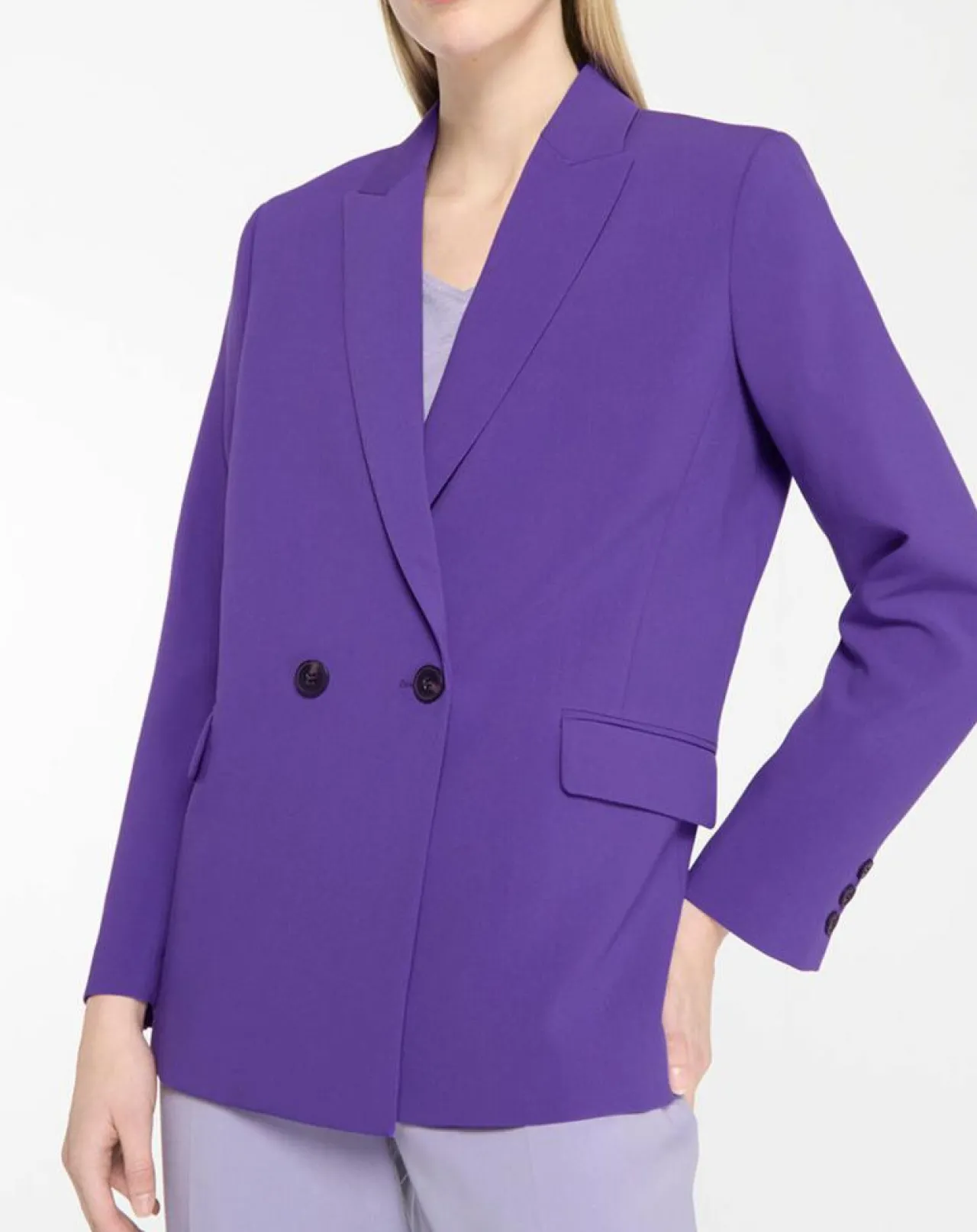 Cette veste tailleur Galeries Lafayette est munie d’un col cranté, d’un double boutonnage et de poches.