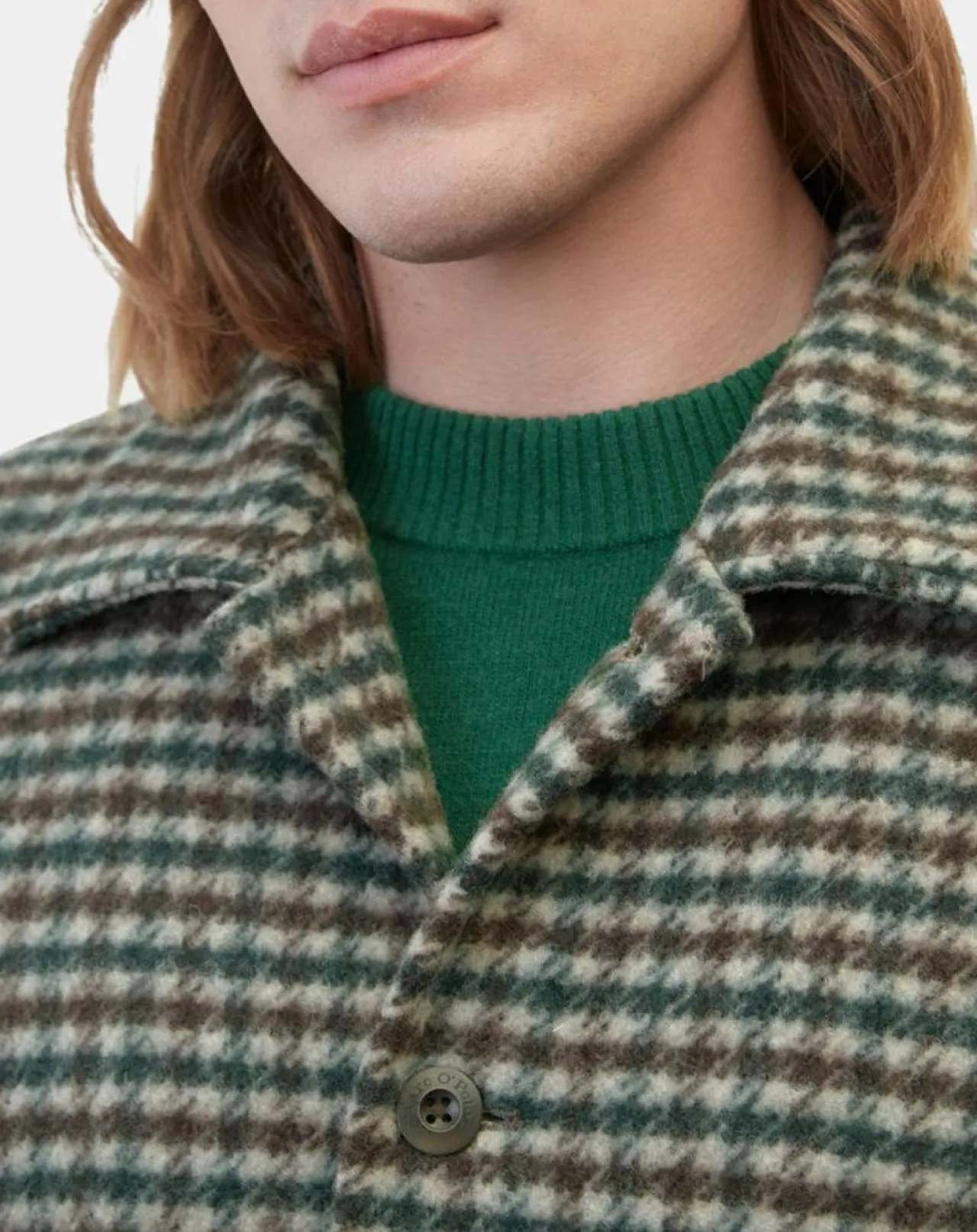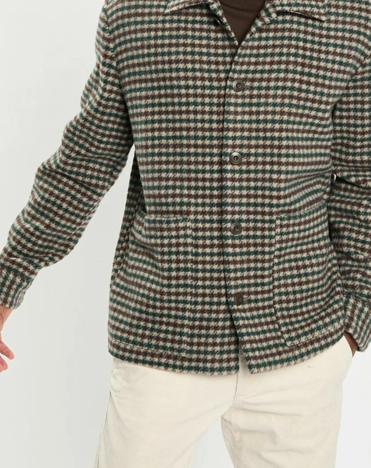 Un nouveau modèle de qualité : la surchemise décontractée à carreaux fins fabriquée à partir d’une magnifique laine vierge mélangée.