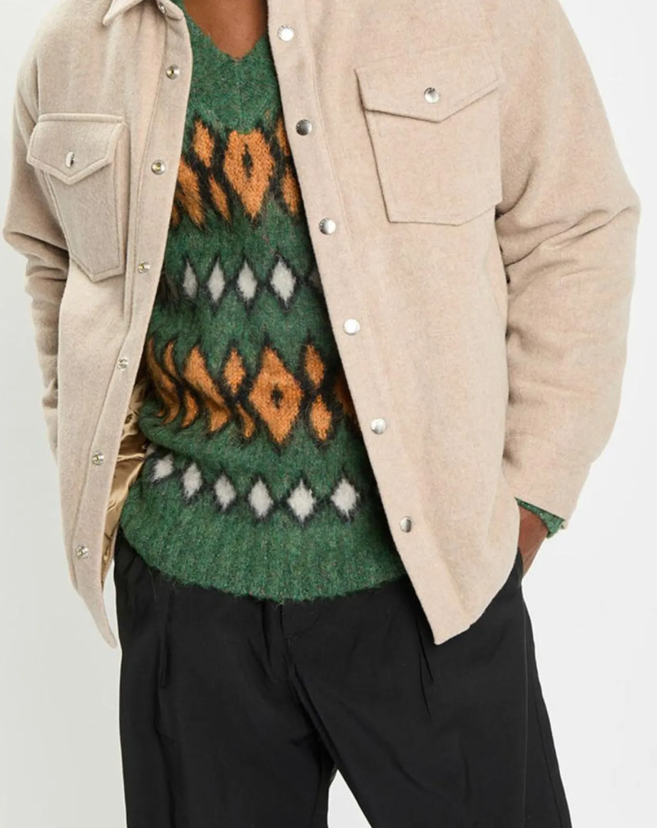 Offrant une chaleur laineuse, cette veste décontractée en laine de mouton mélangée matelassée mise entièrement sur des matières recyclées : MWOOL®, la laine recyclée haut de gamme de l’entreprise textile italienne MANTECO®.